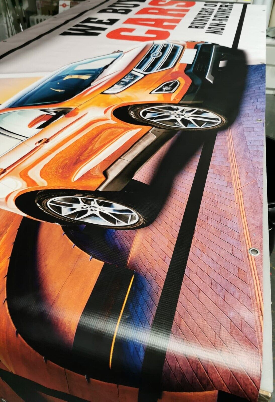 Our 440gsm outdoor promotional banners are perfect for high-impact marketing. Printed with advanced latex printing technology, these banners boast exceptional durability and vibrant, weather-resistant colours. Ideal for outdoor events, storefront displays, and promotional campaigns, they are designed to withstand harsh elements while maintaining their striking appearance. The heavyweight 440gsm material ensures a robust, long-lasting banner that effectively captures attention and delivers your message with clarity and professionalism.