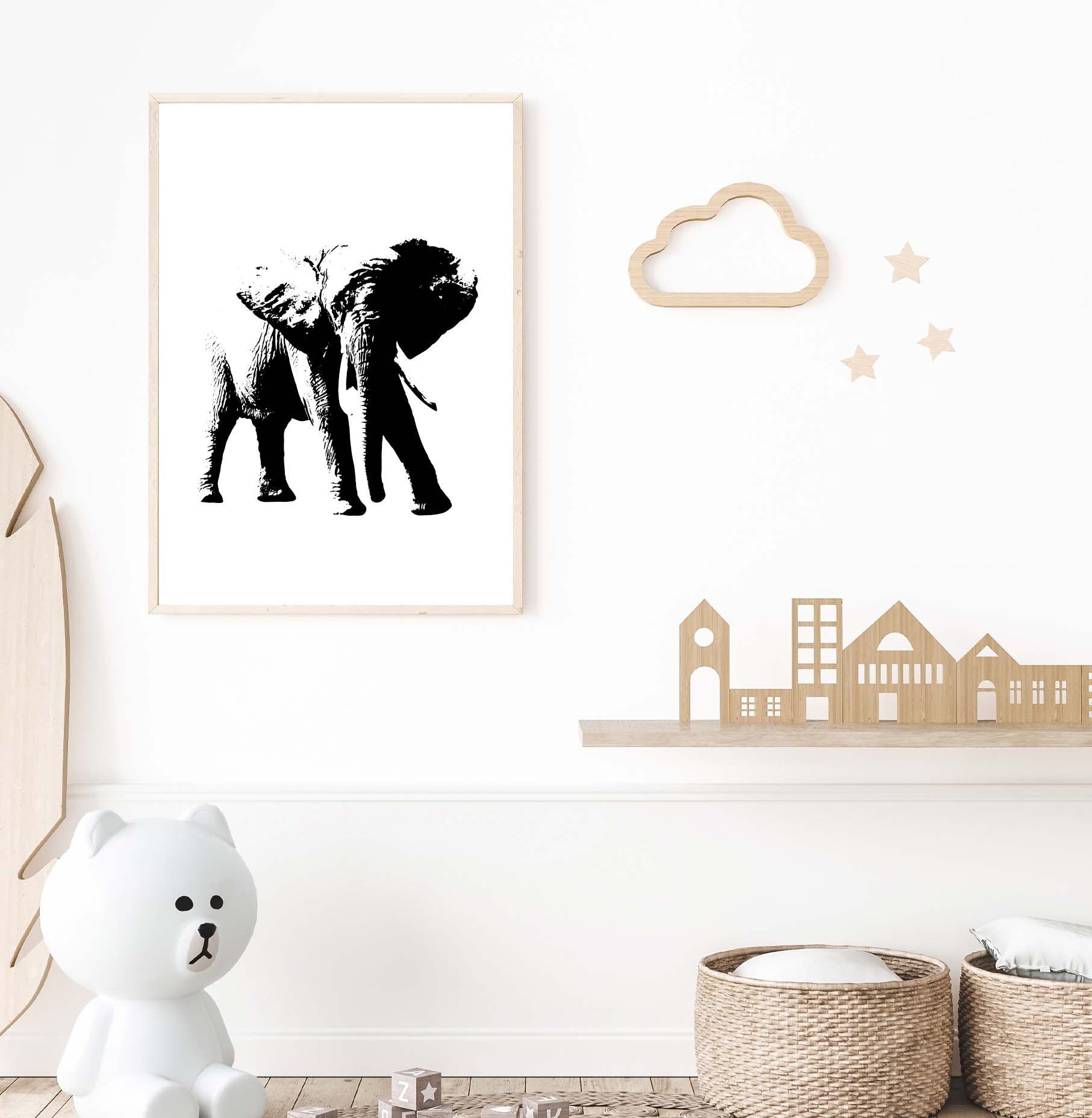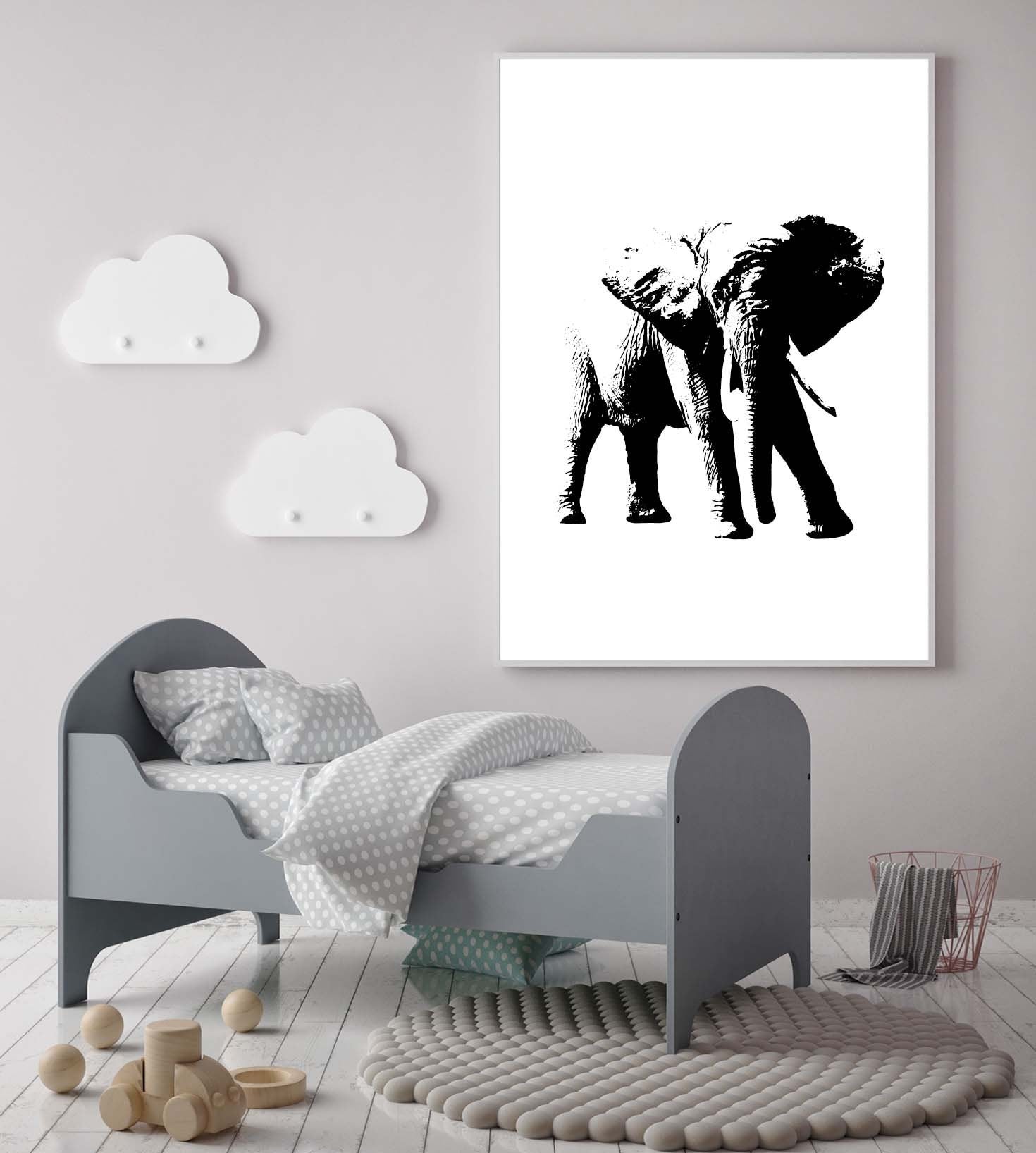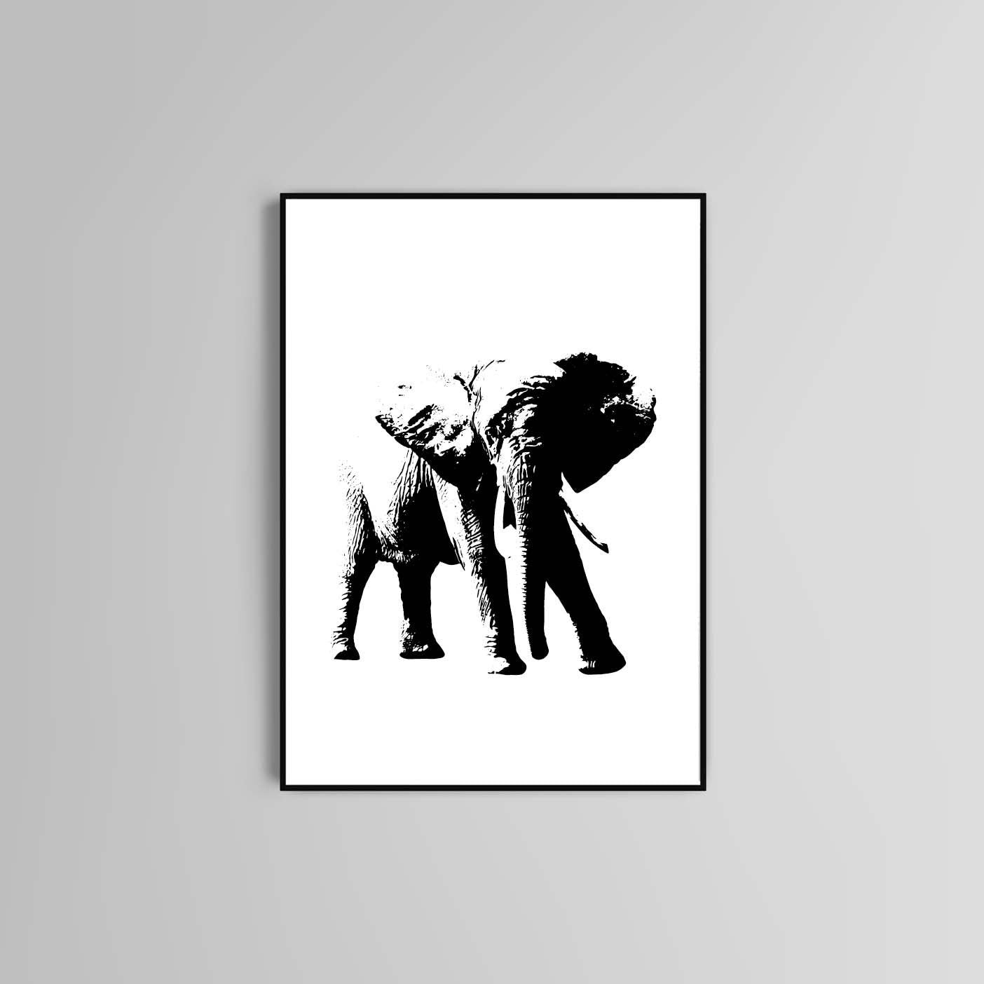 Elephant poster print home wall art decor black and white animal design