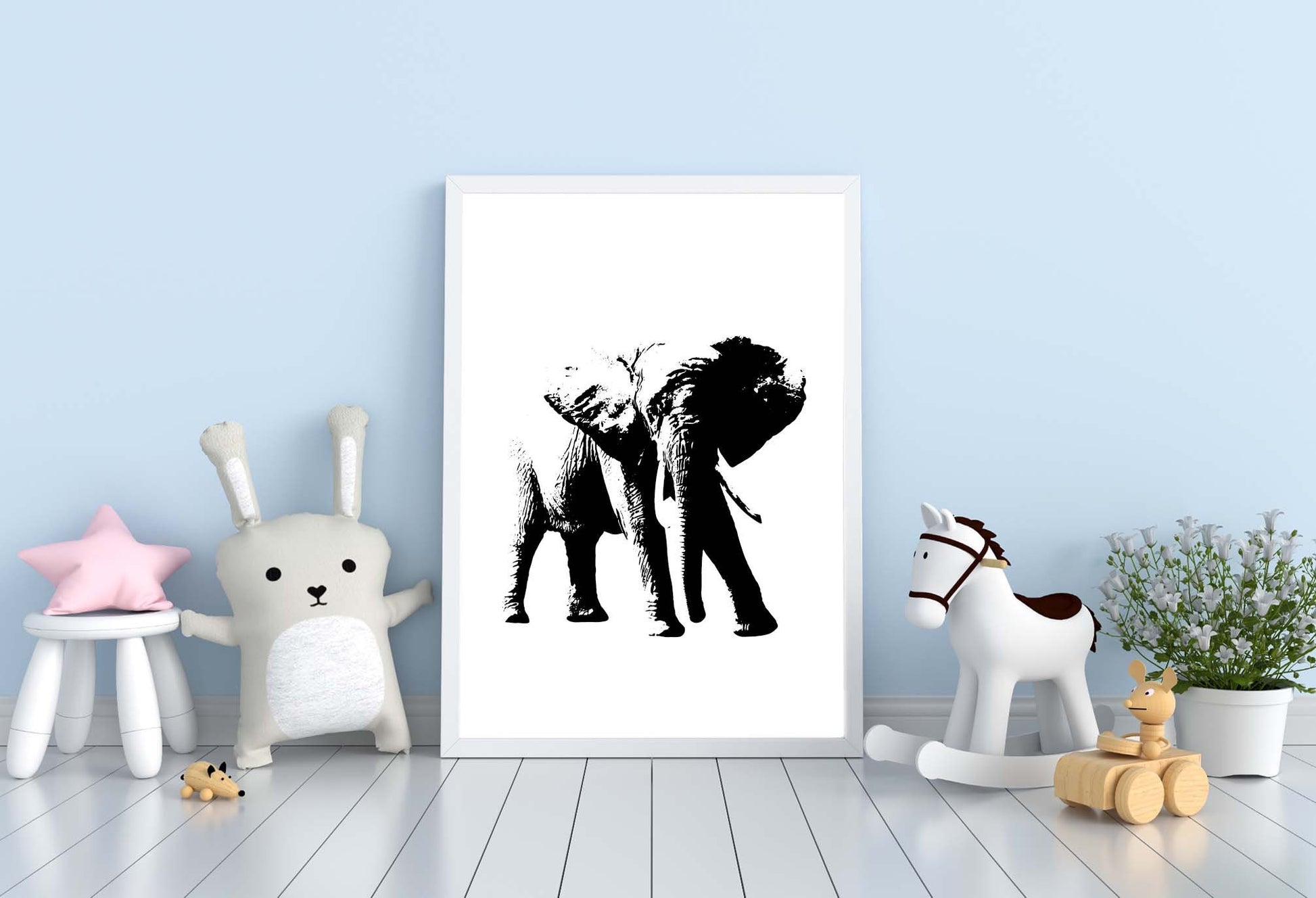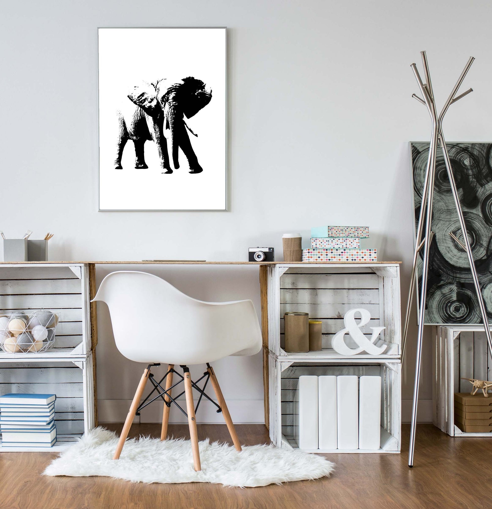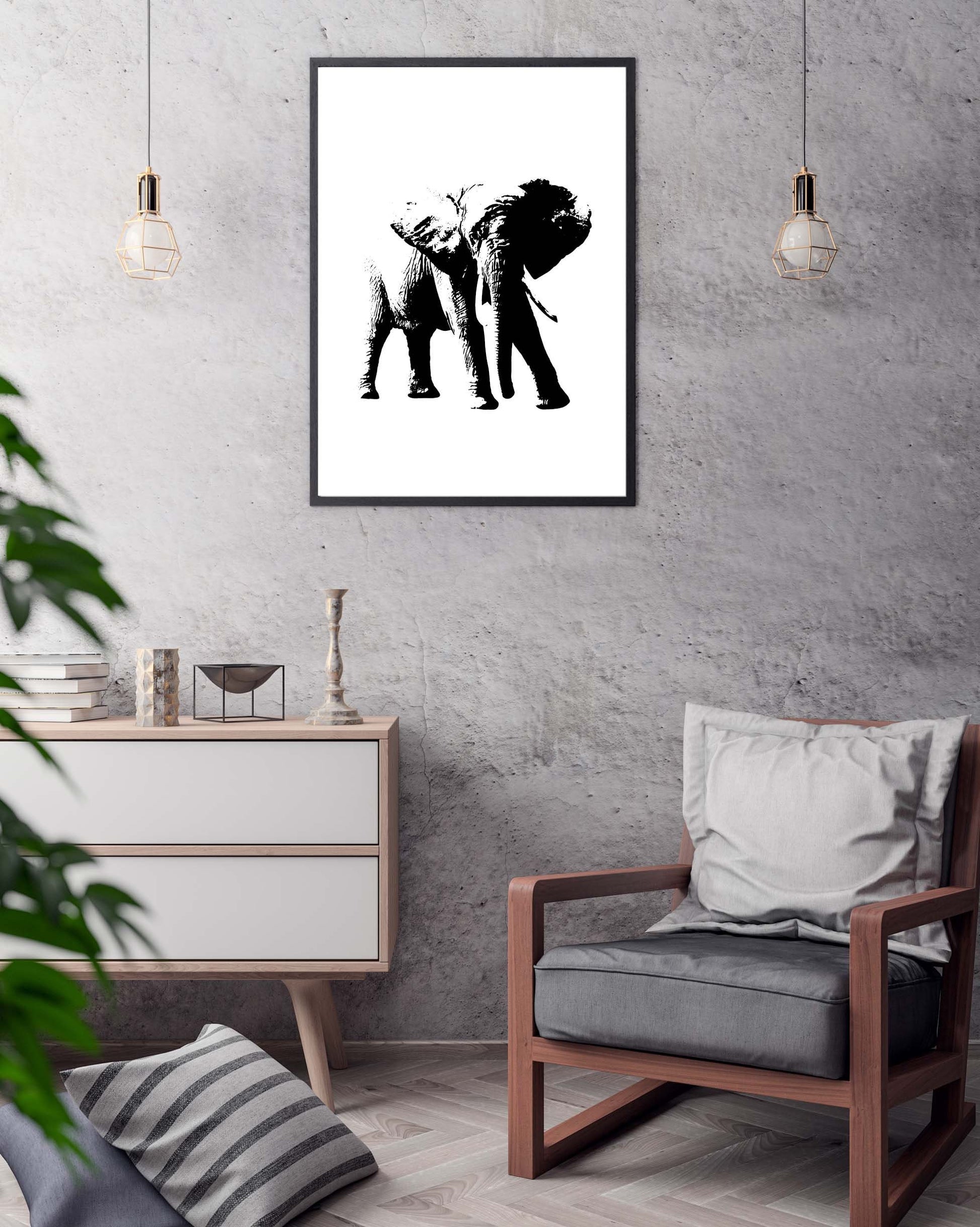 Elephant poster print home wall art decor black and white animal design
