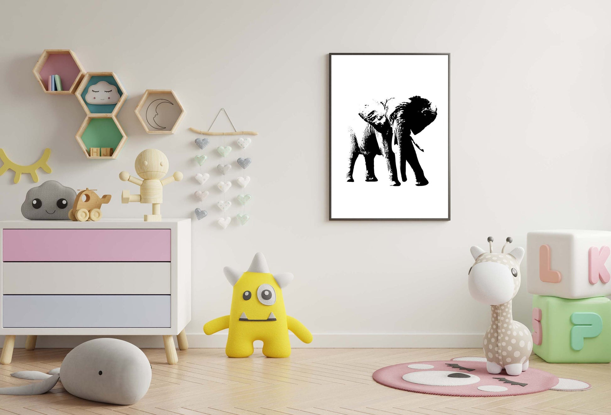 Looking for a way to add some flair to your home décor?If you are an Elephant lover this amazing print is a perfect choice. Check out this lovely Elephant print! The black and white colours give it a sophisticated look, perfect for any bedroom. Plus, the design hangs on the wall, making it easy to add some character to any room.