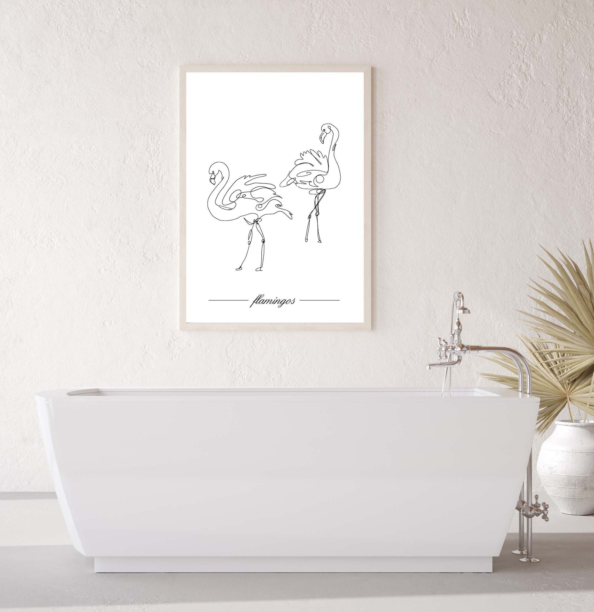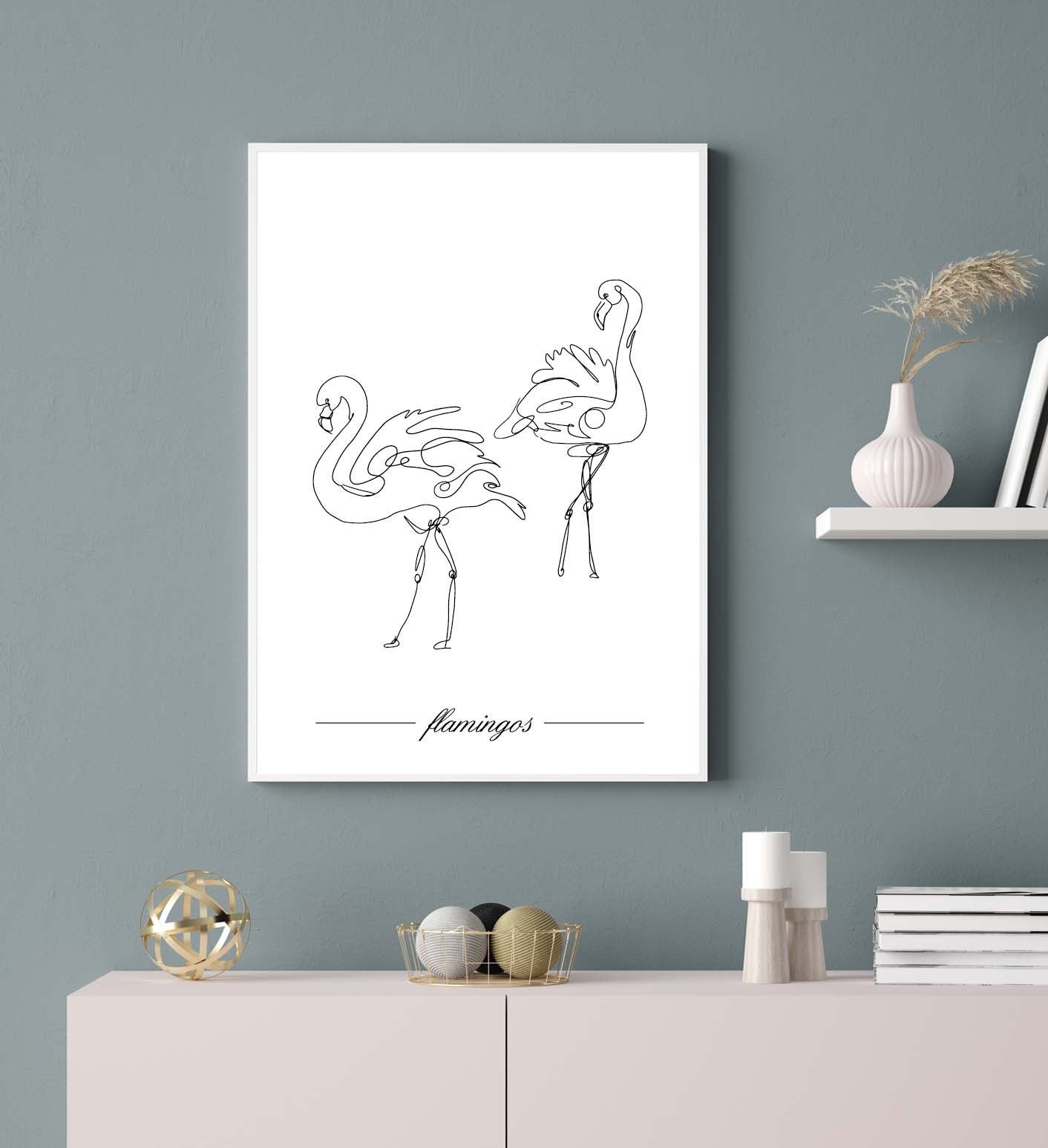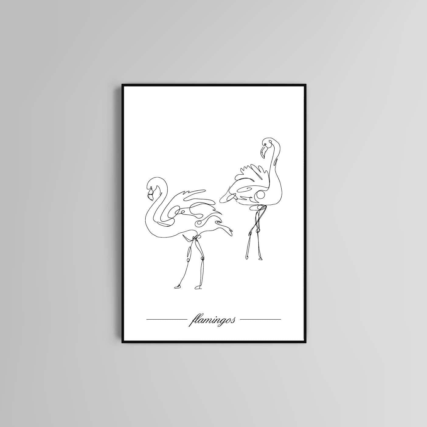 Flamingos poster print home wall art decor one line modern style design