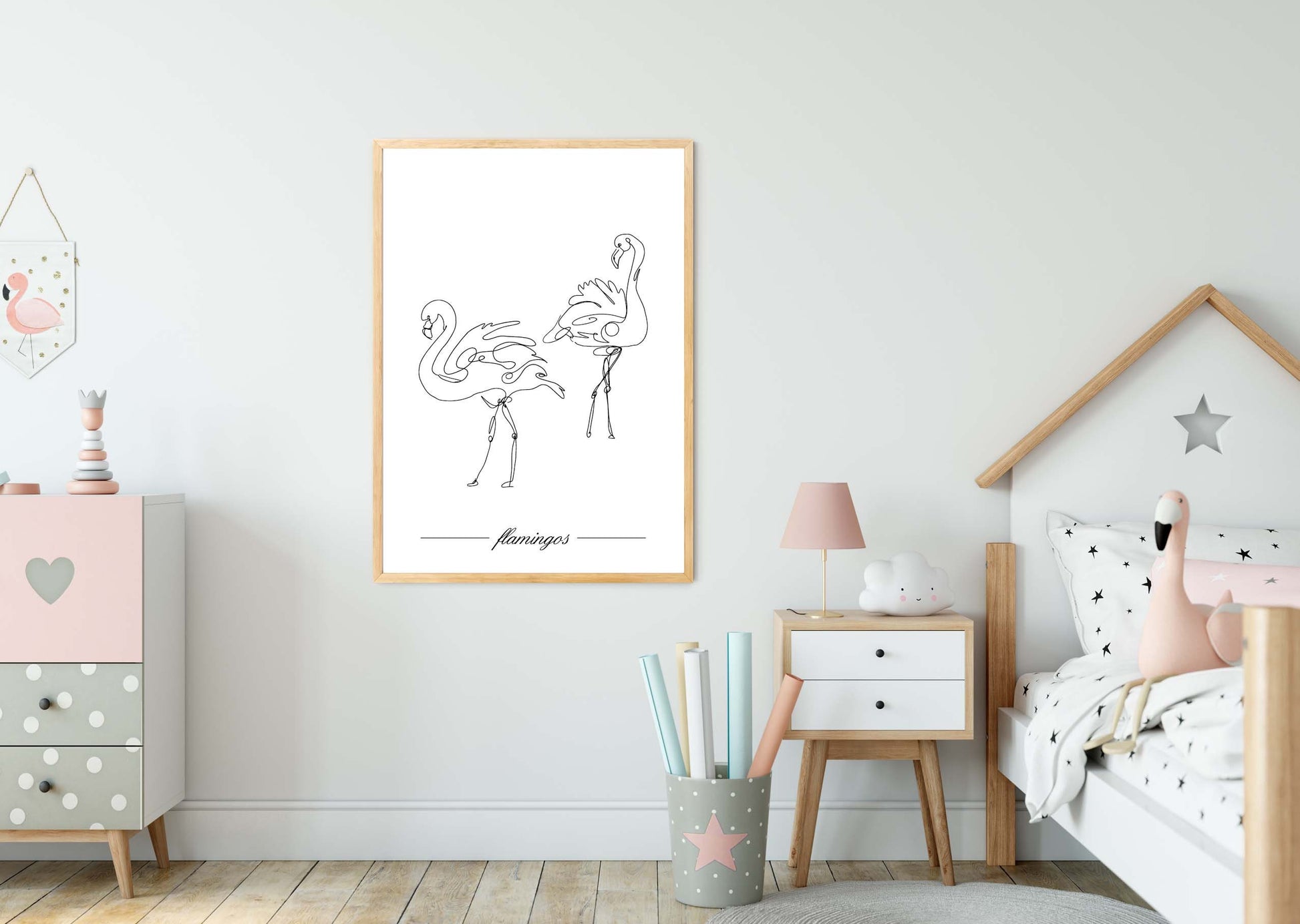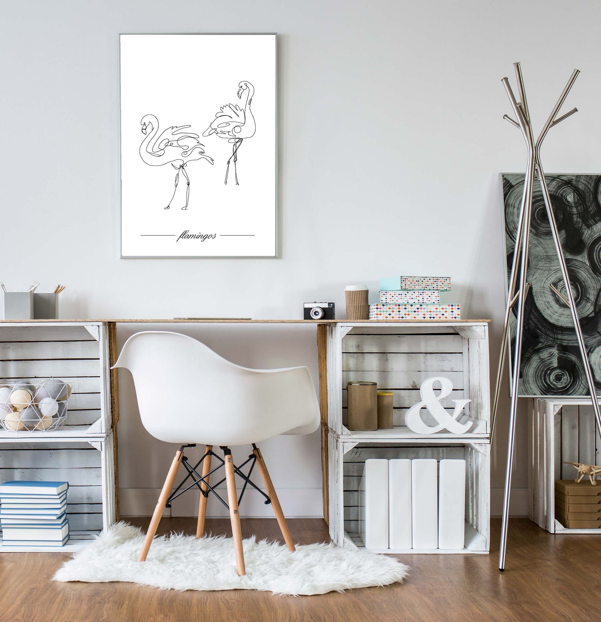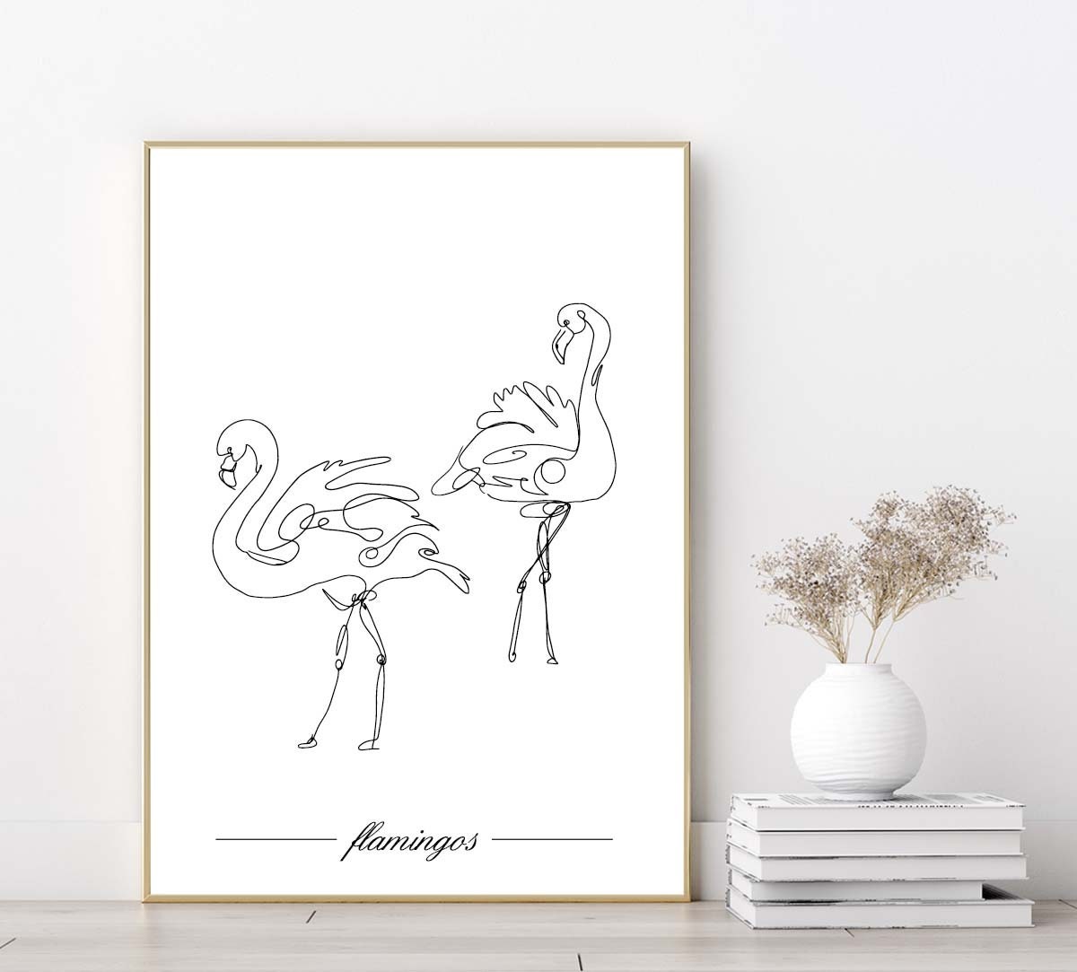 Flamingos poster print home wall art decor one line modern style design