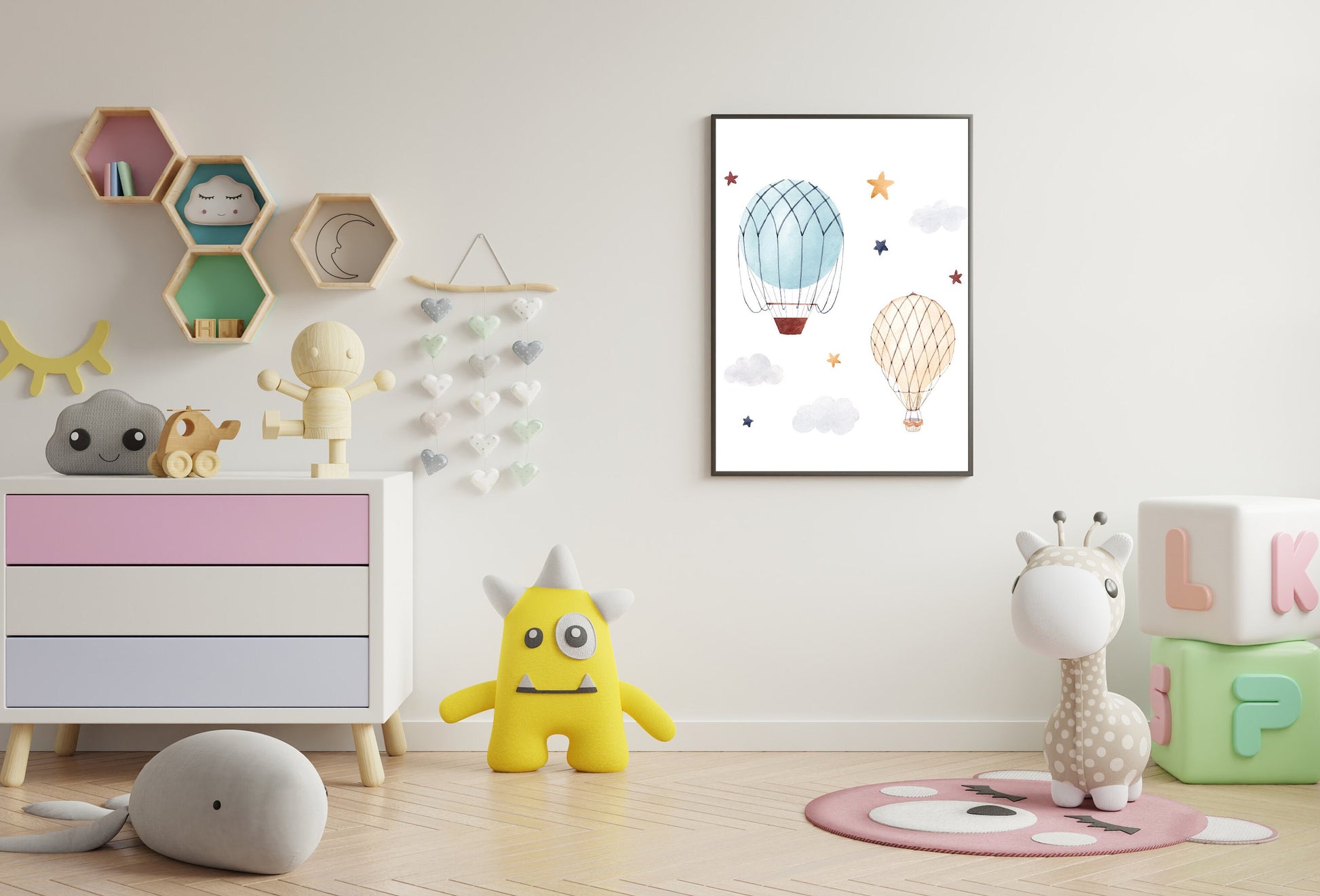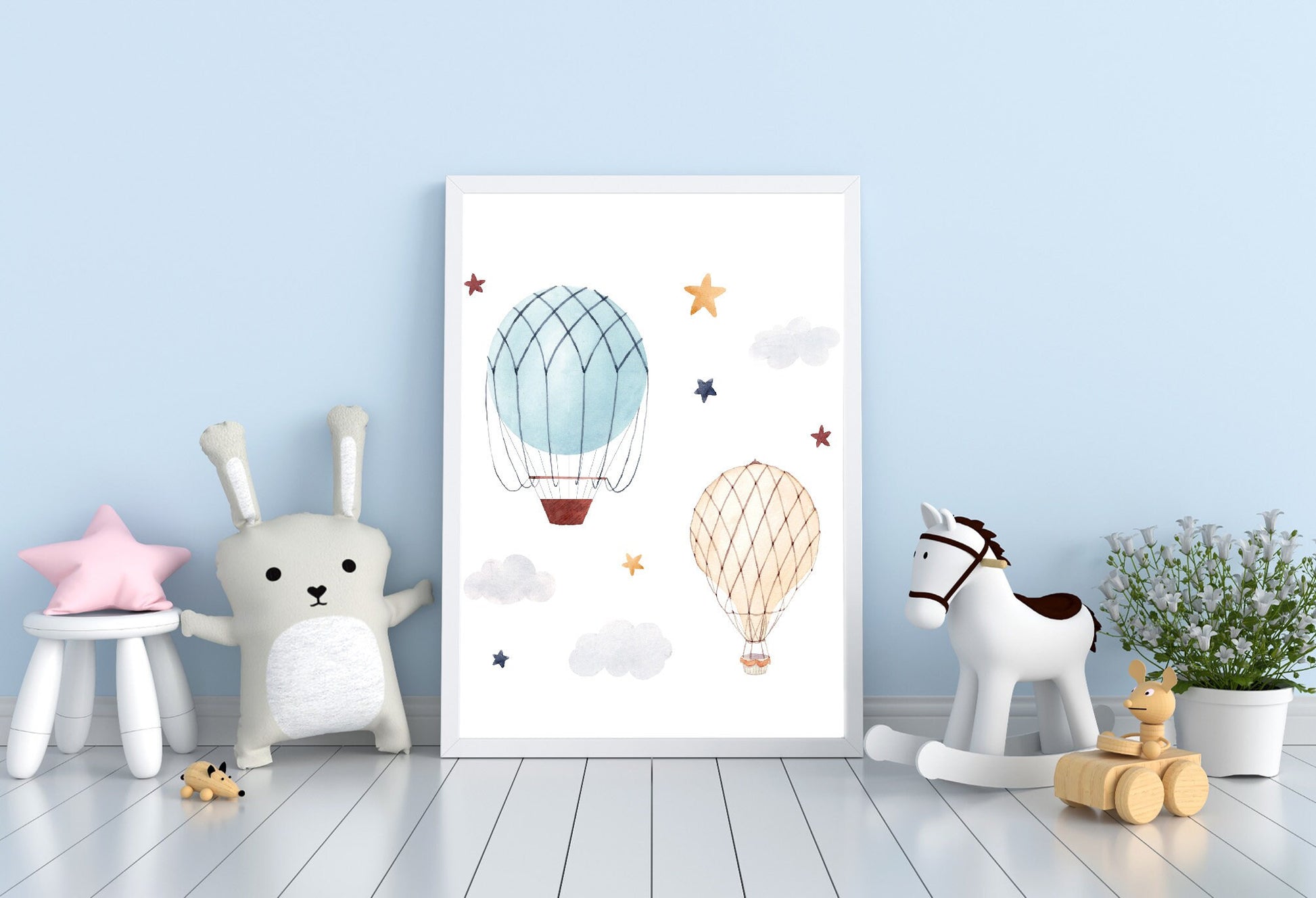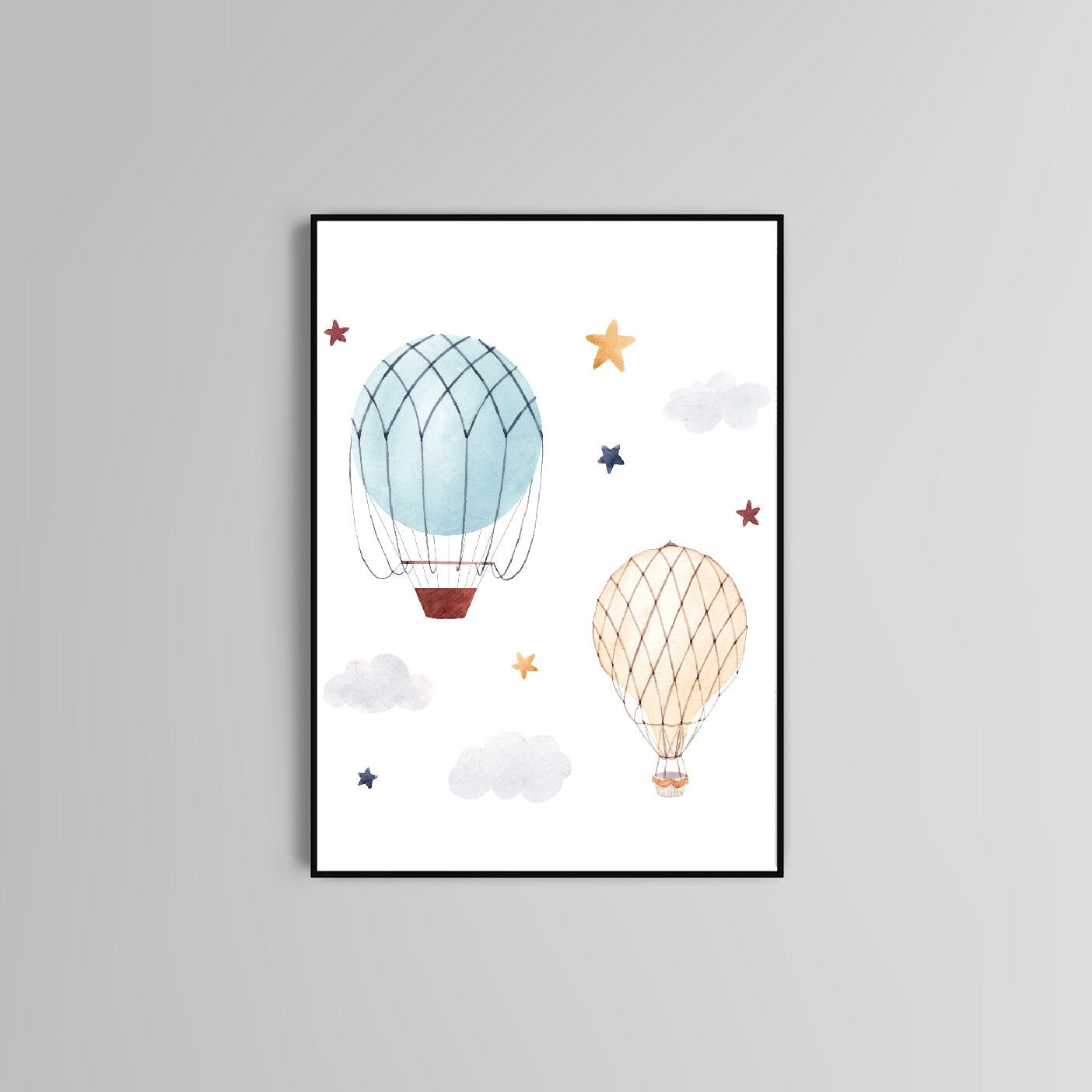 Hot air balloons print poster print home wall nursery art decor modern designed for kids