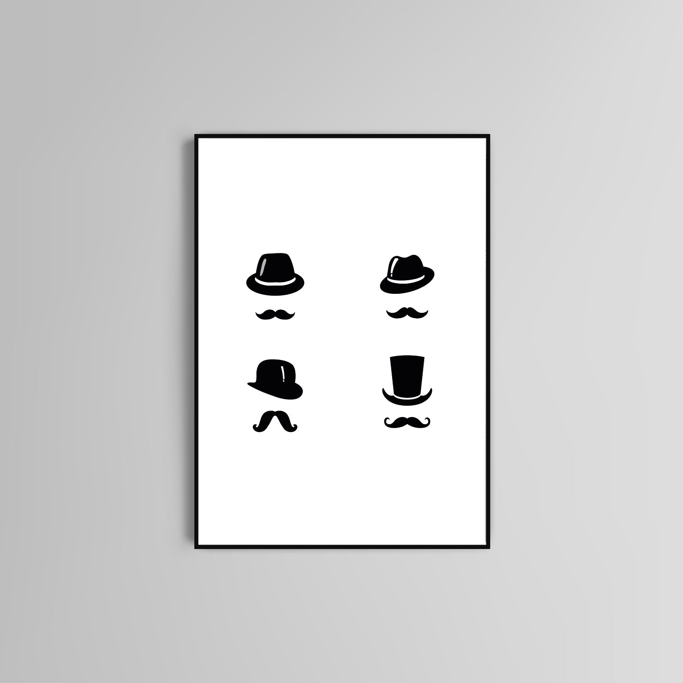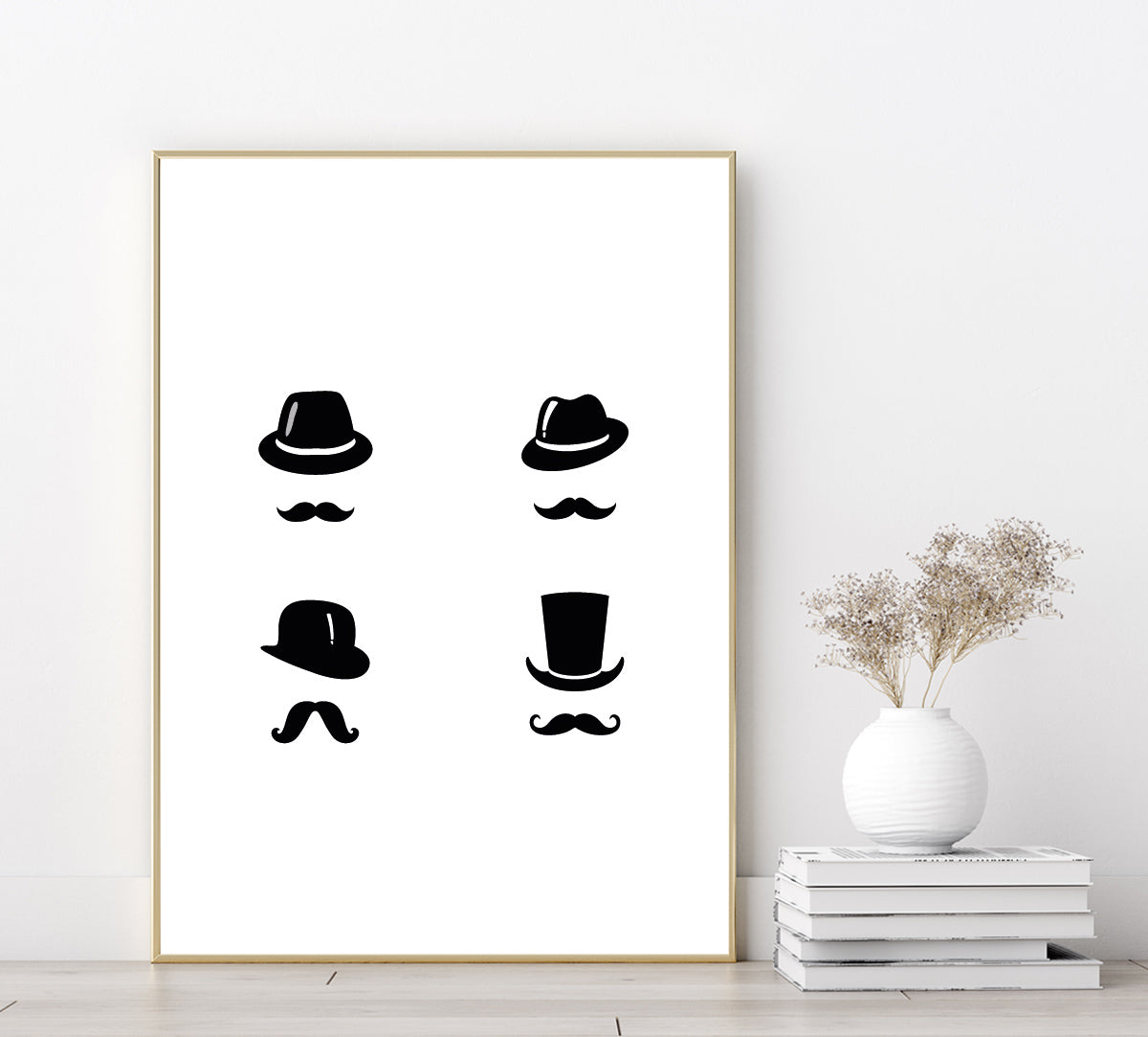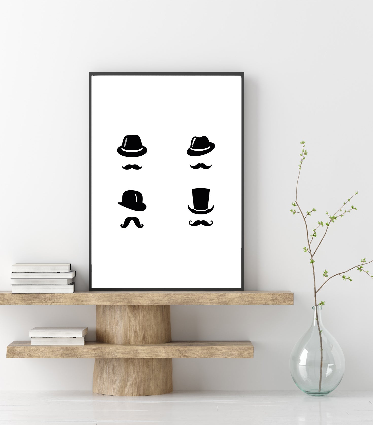 Looking for a unique addition to your wall art collection? Check out these hipster-inspired moustache posters, and choose the one you like! Printed on high-quality paper, this black and white poster is perfect for anyone who appreciates modern design. Whether you're looking for a gift for a hipster friend or just want to add a touch of personality to your own home, this poster is sure to make a statement. Hang it up in your home office, bedroom or living room and enjoy the eye-catching style it adds to the space.