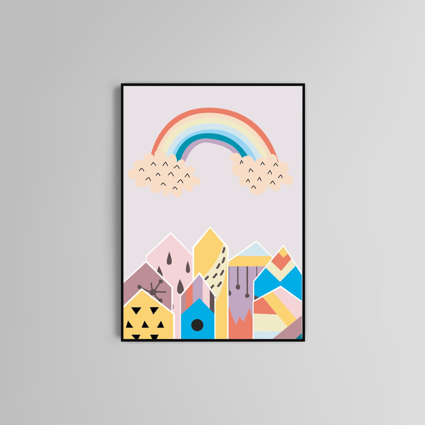 This Nordic-style Colourful Rainbow and the City make your little space cosy and modern. This beautiful Poster is printed using Eco-friendly water-based inks, which are safe for you and the environment.