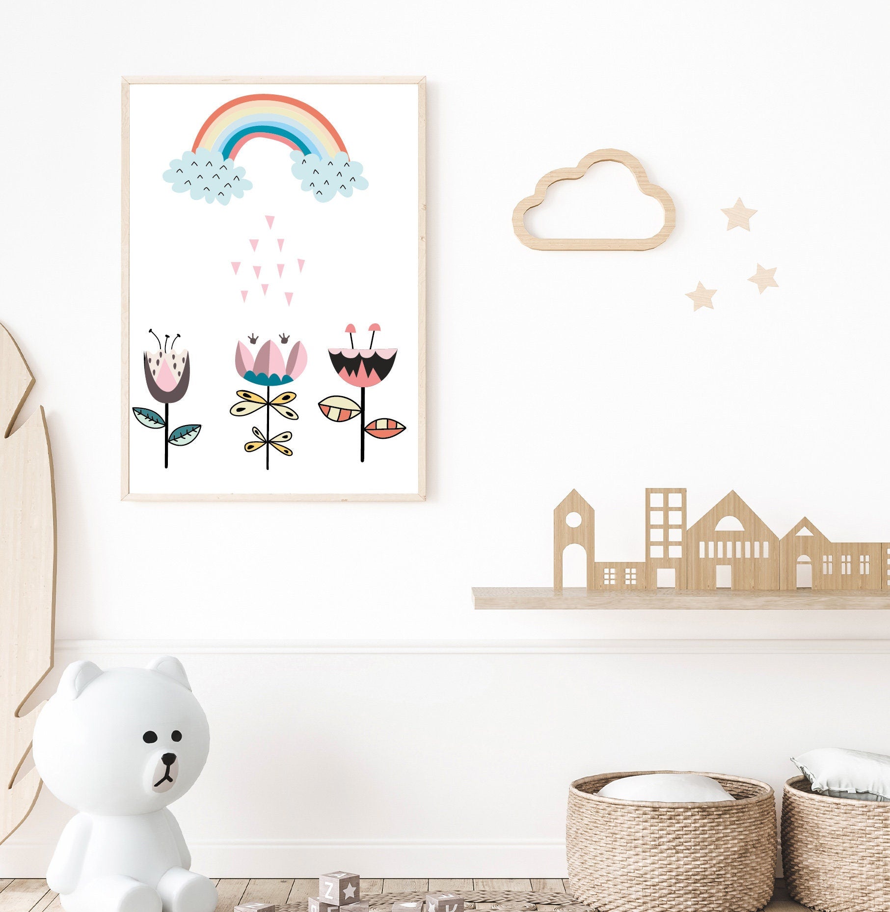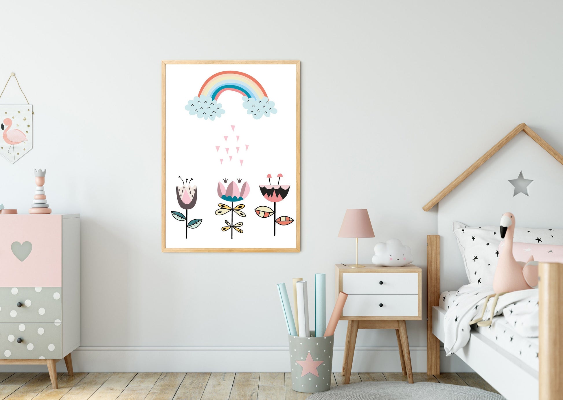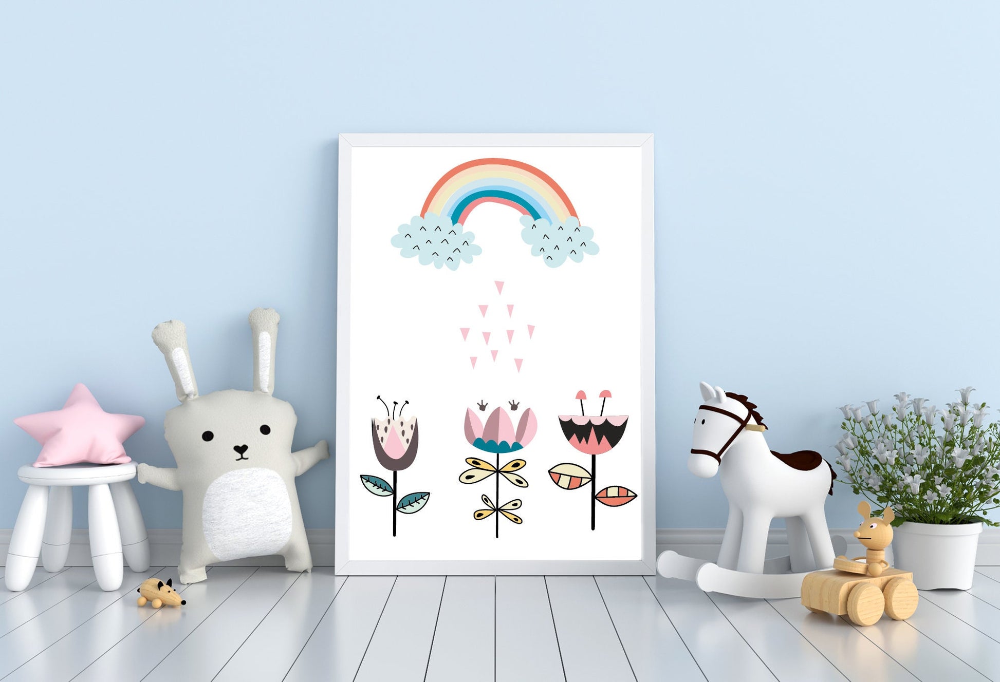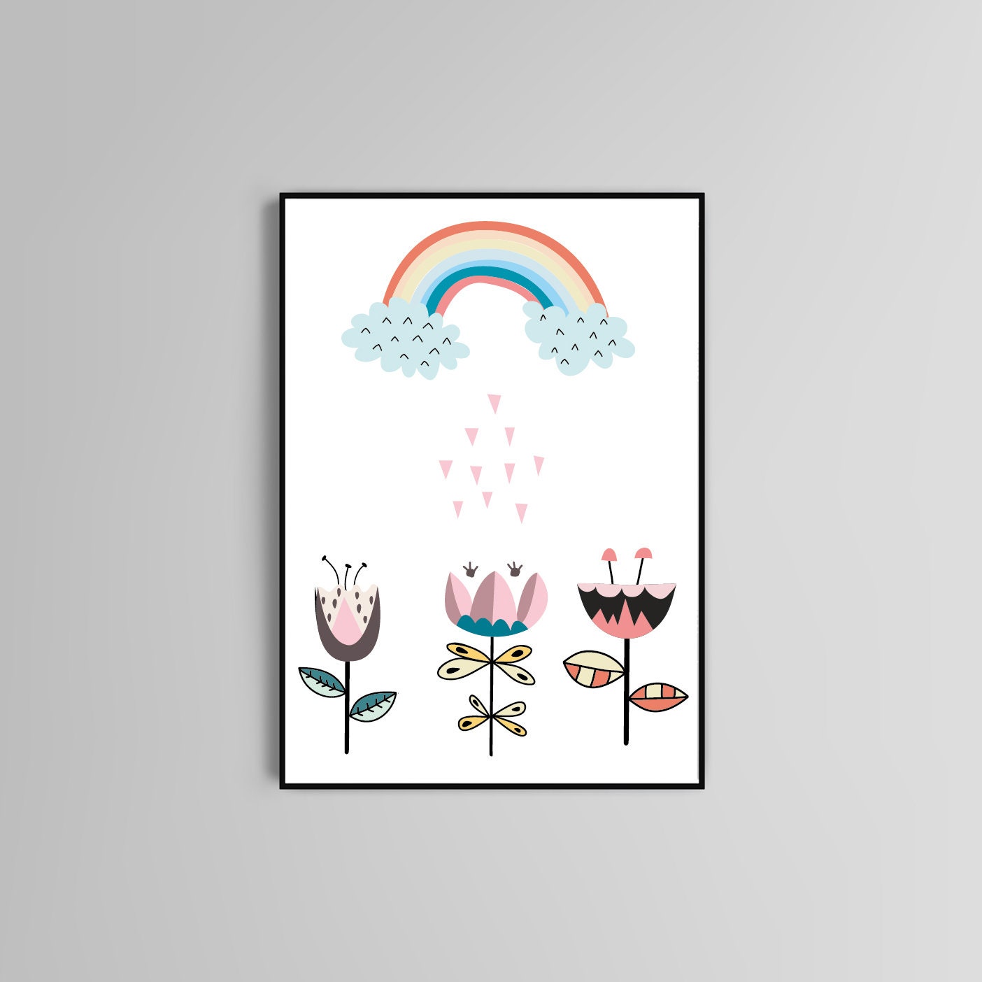 Rainbow poster print home wall nursery art decor Nordic style flowers modern design