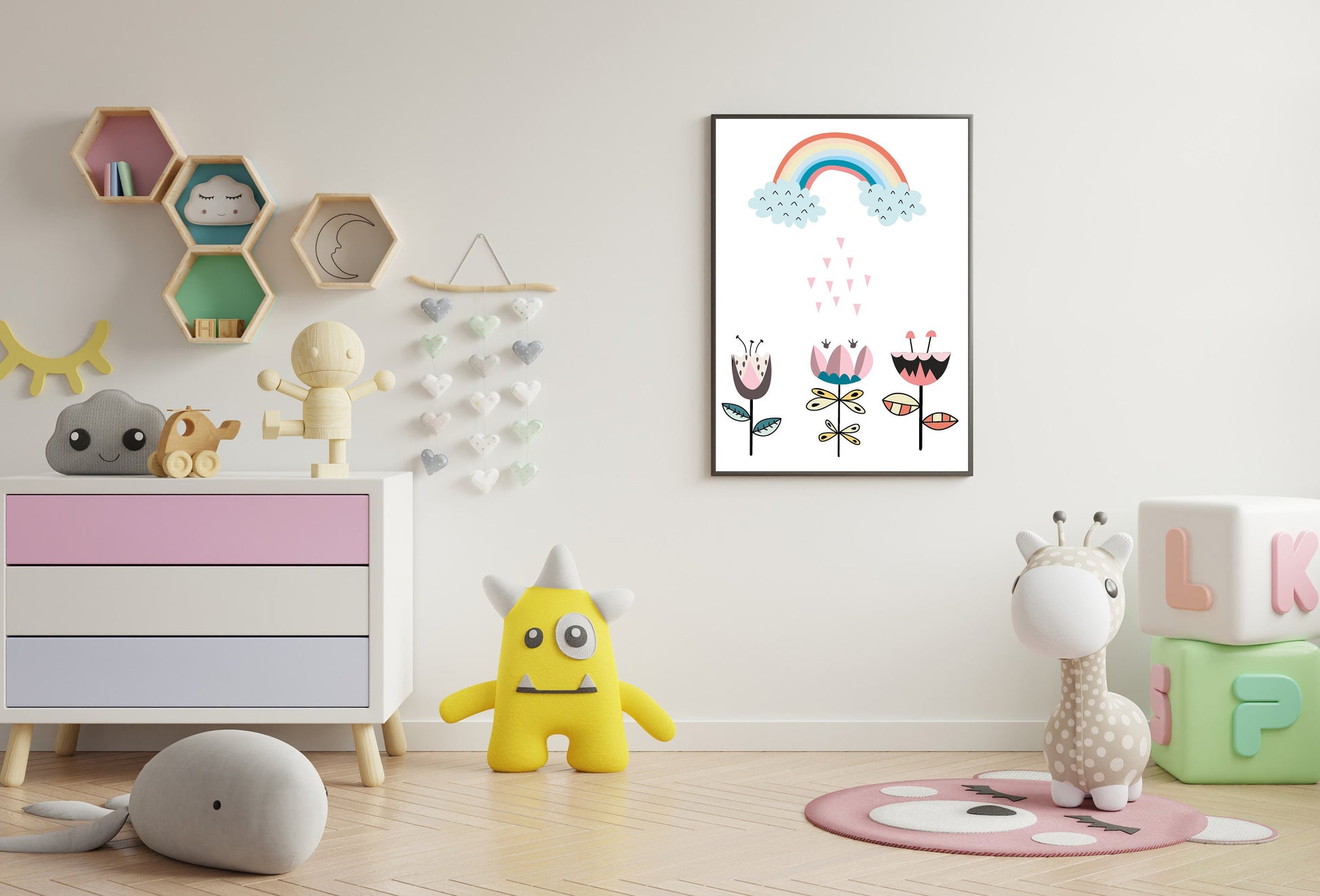 This Nordic-style Colourful Rainbow and the flowers make your little one space so cosy and modern. This beautiful Poster is printed using Eco-friendly water-based inks, which are safe for you and the environment.
