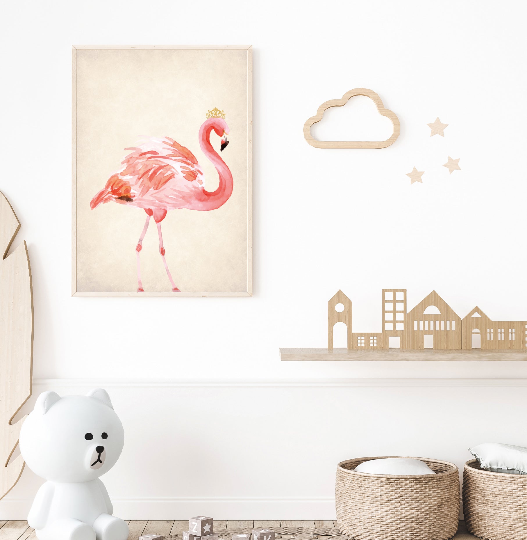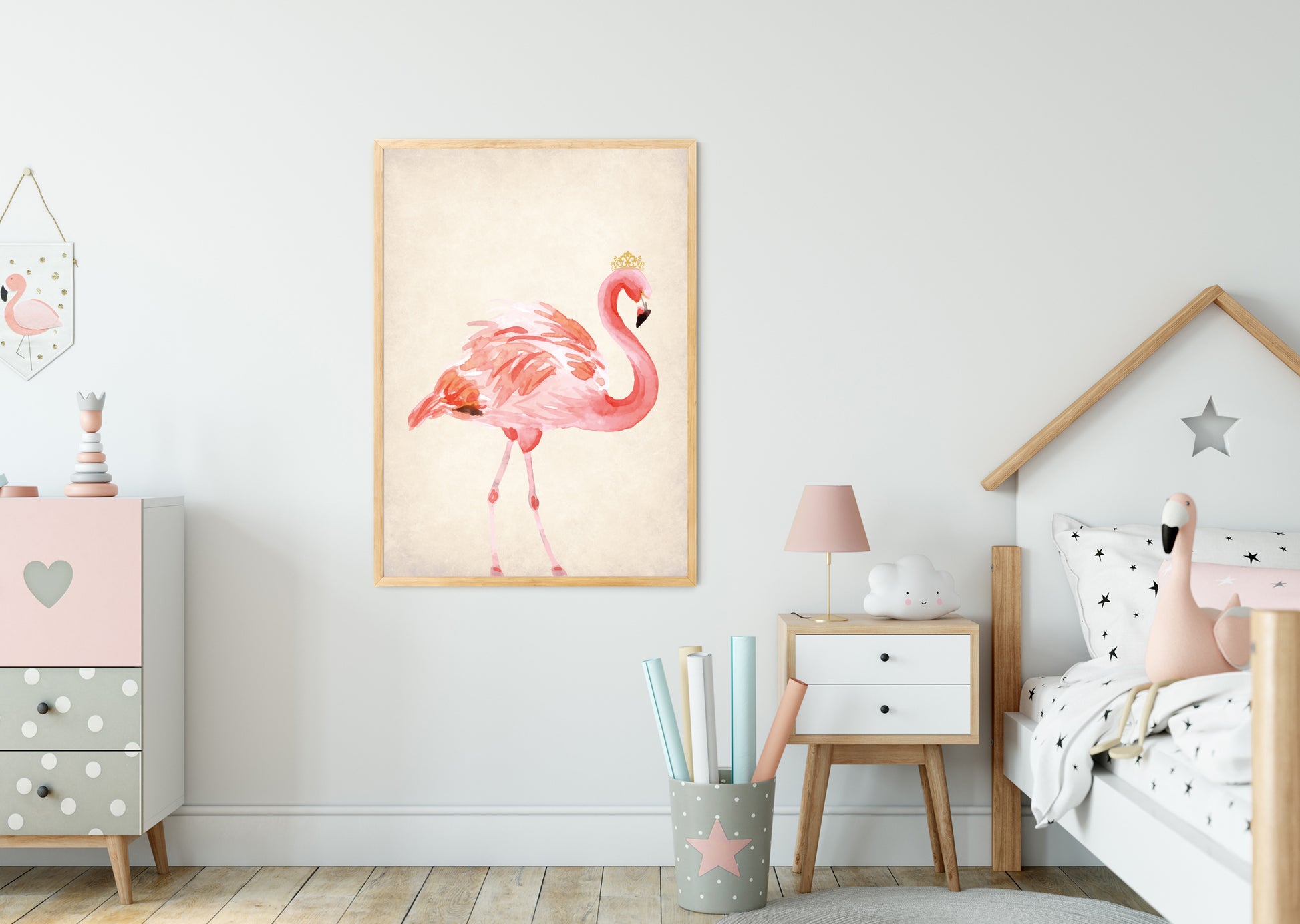 Pink Flamingo poster print home wall art decor elegant design kids nursery room crown prince