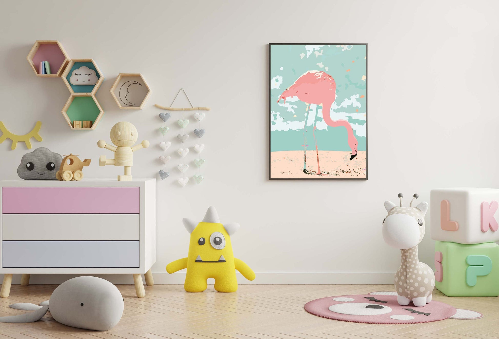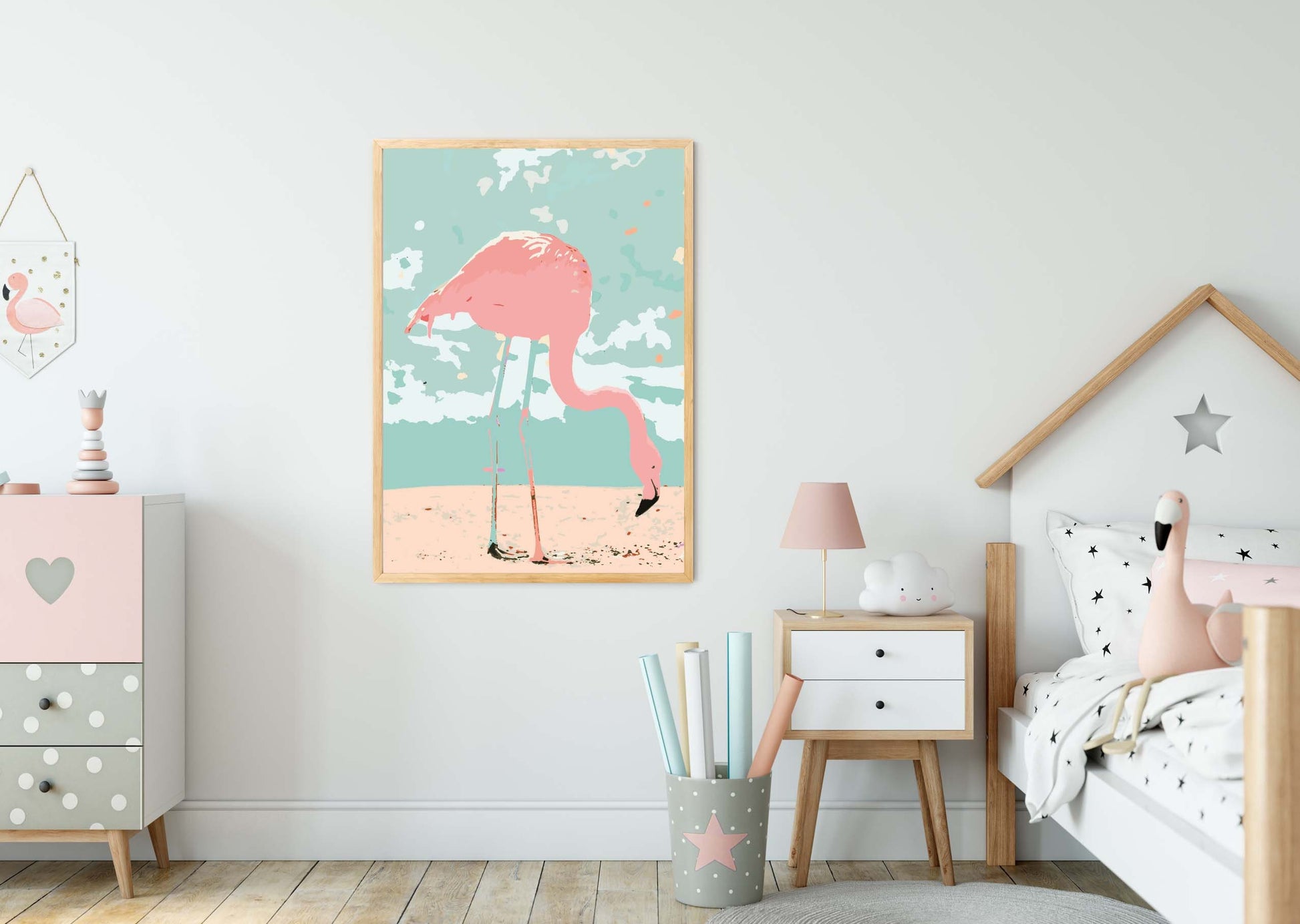 Pink Flamingo poster print home wall art decor nursery kids modern design