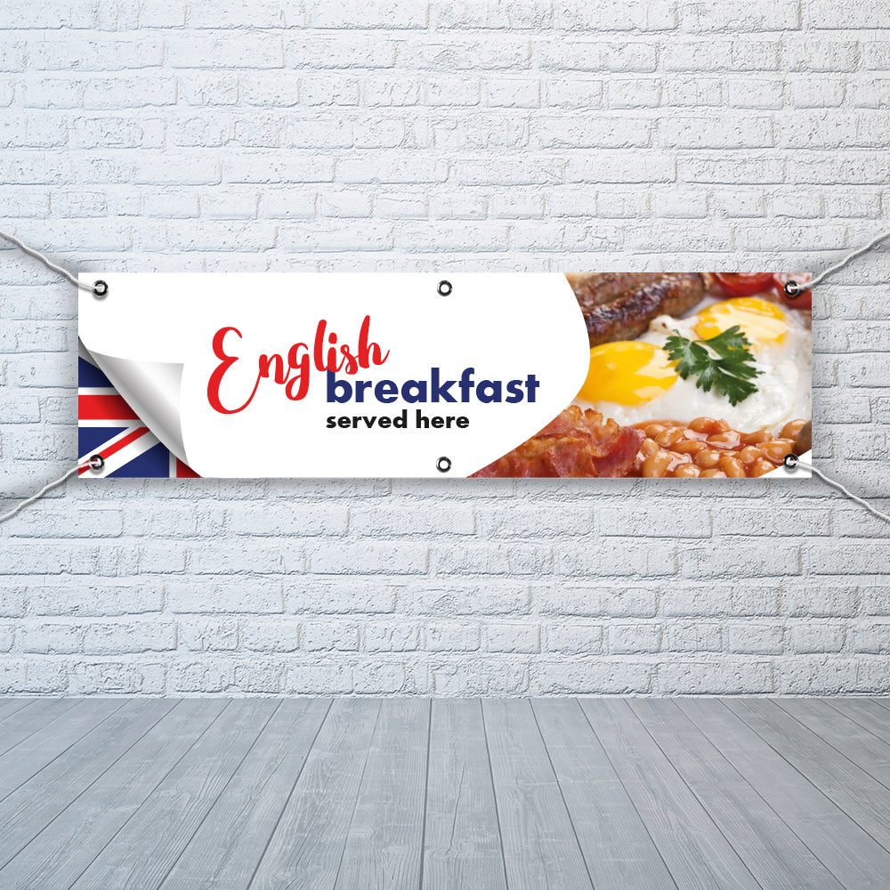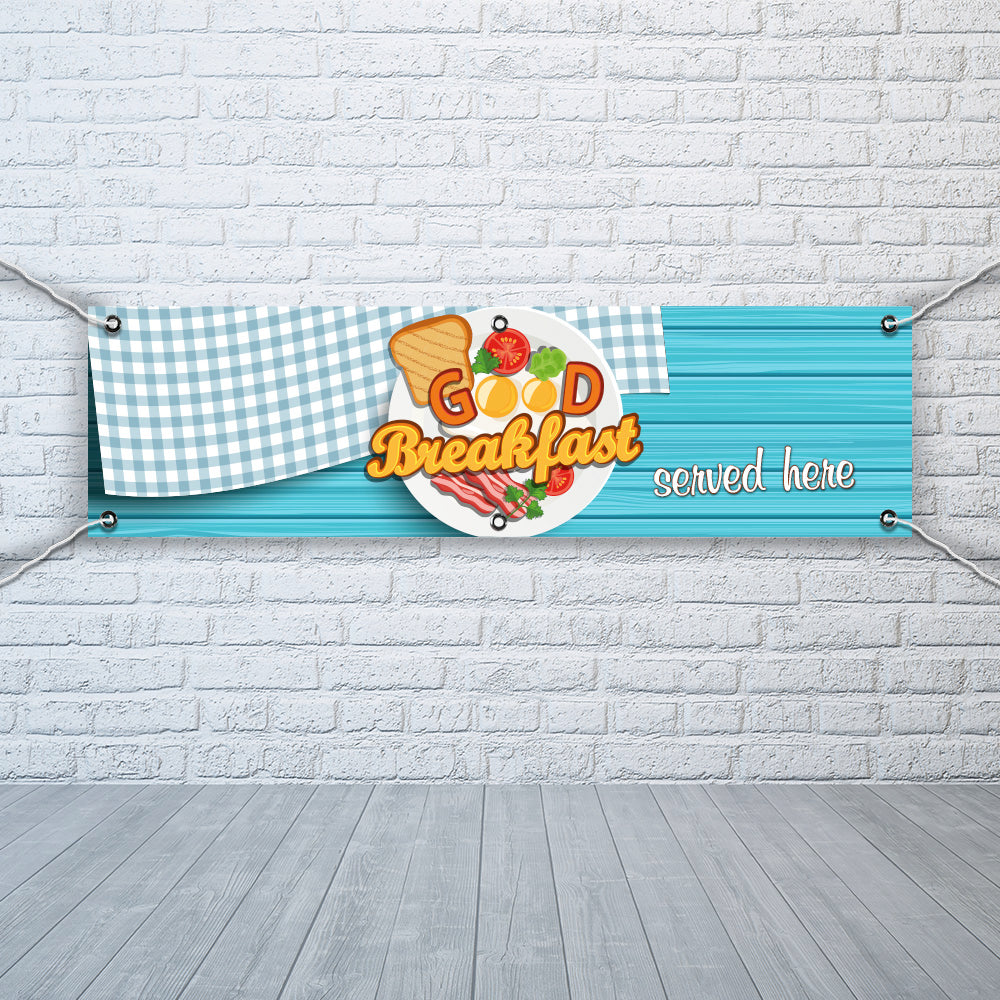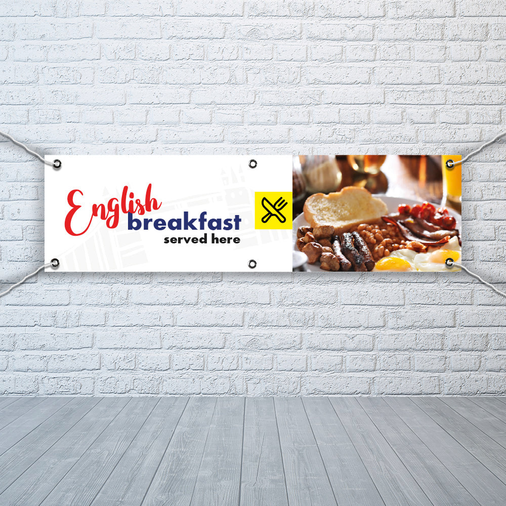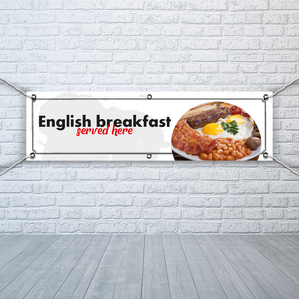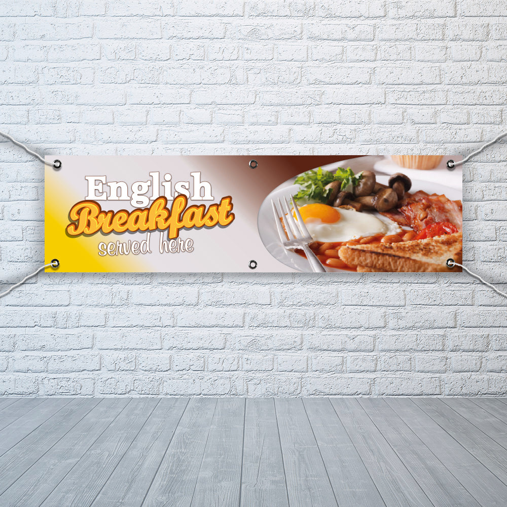 PVC Banner All Day Breakfast 1ft x 4ft Fast Food Print Outdoor Waterproof High Quality
