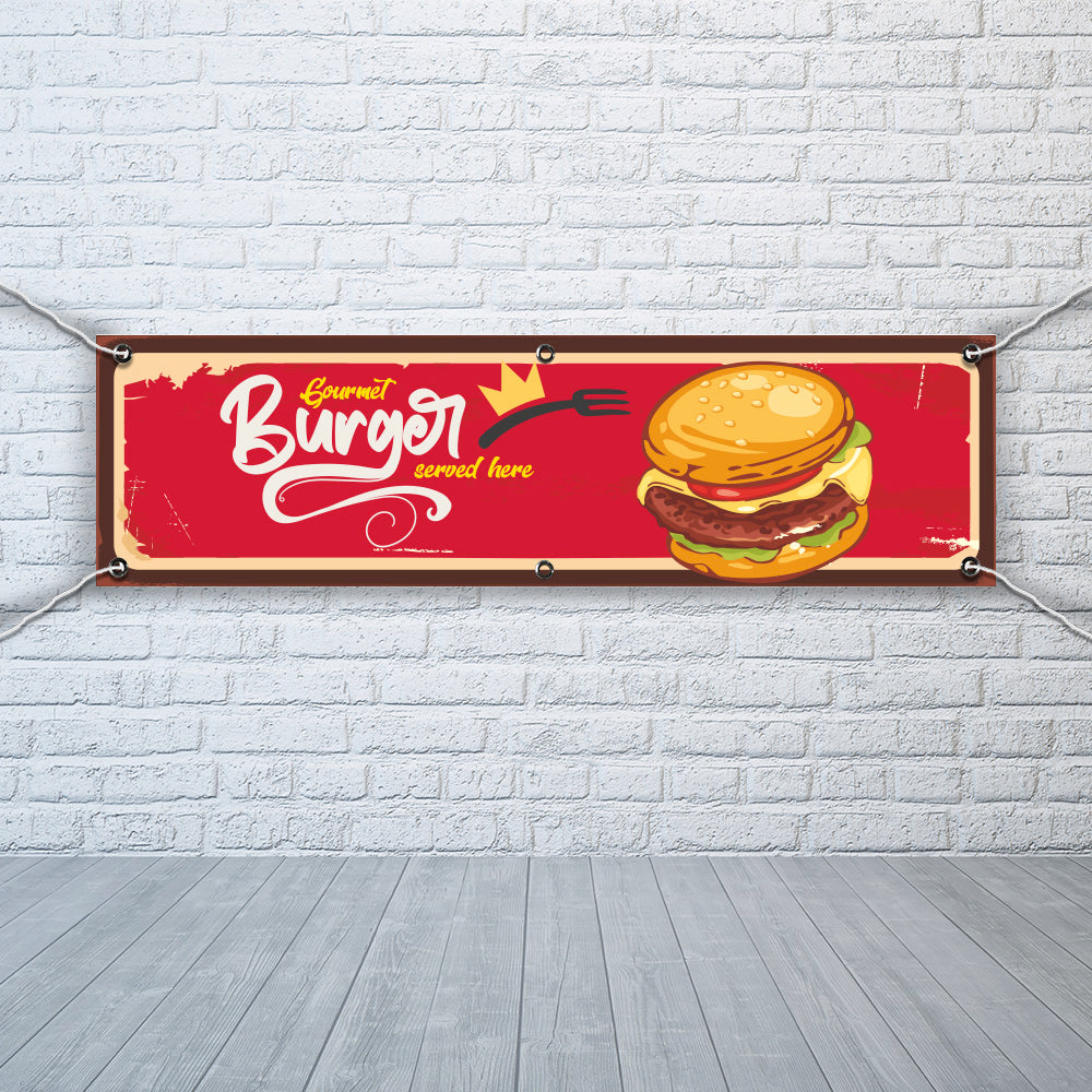 PVC Banner gourmet burgers 1ft x 4ft Print Outdoor Waterproof High Quality