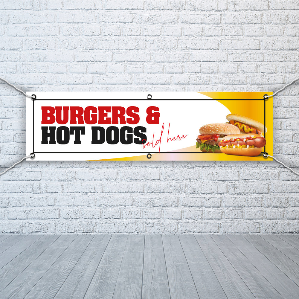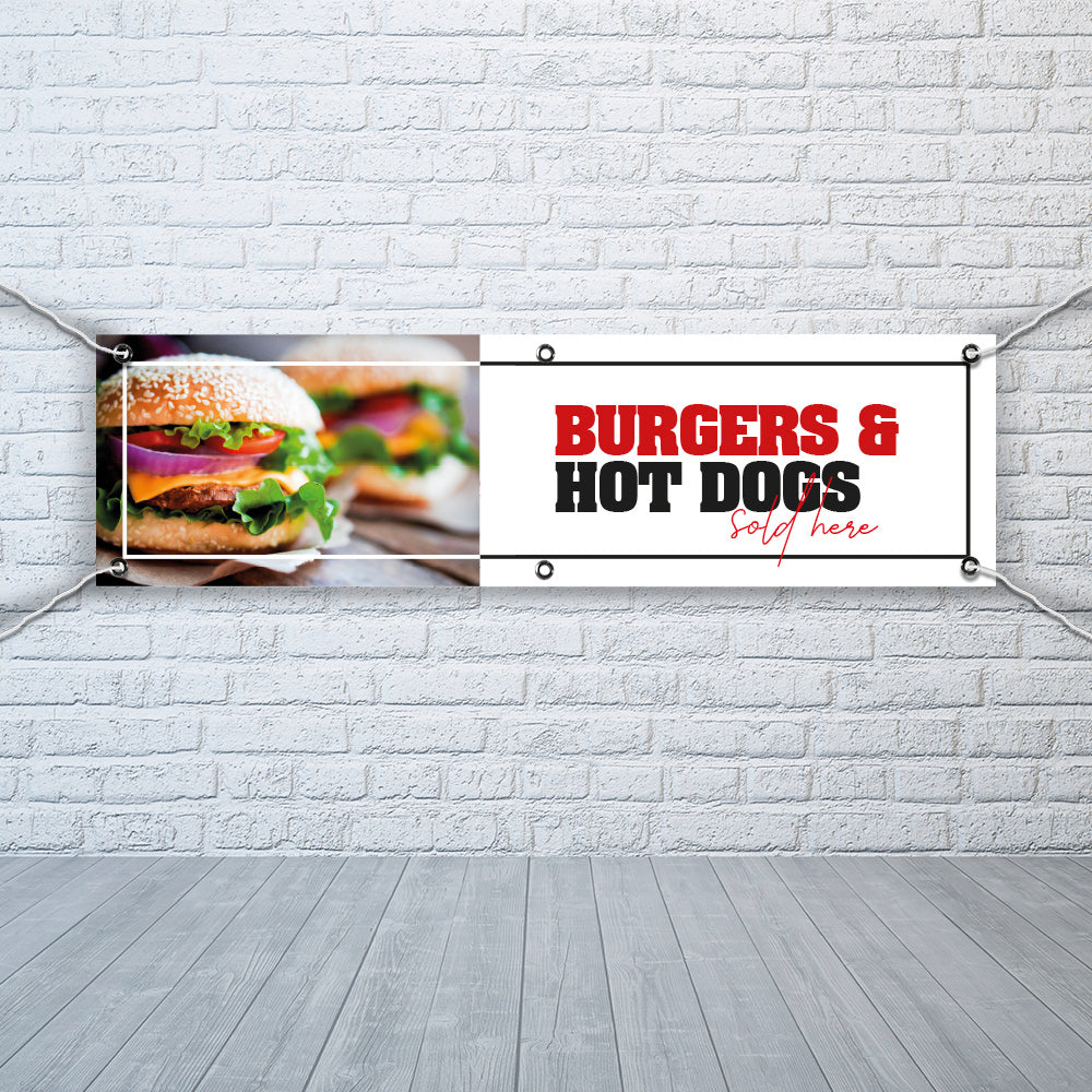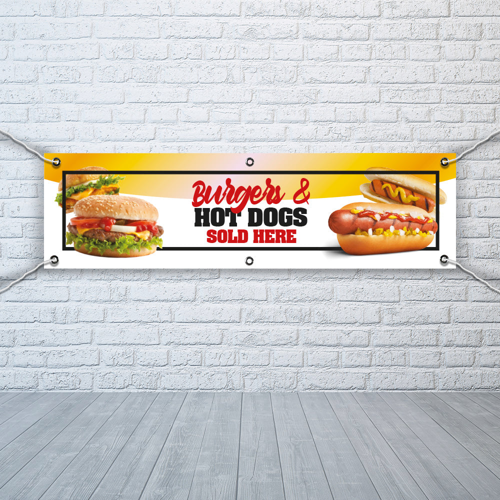 PVC Banner hot dogs burgers 1ft x 4ft Fast Food Print Outdoor Waterproof High Quality