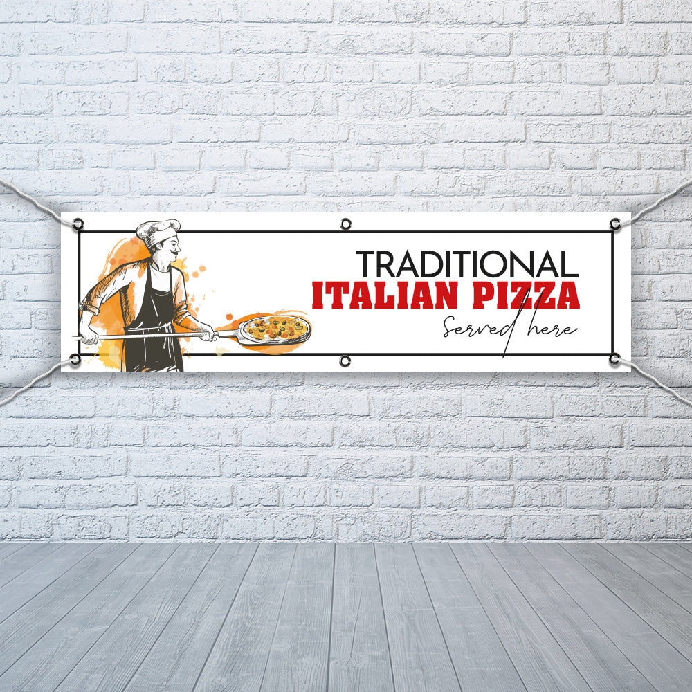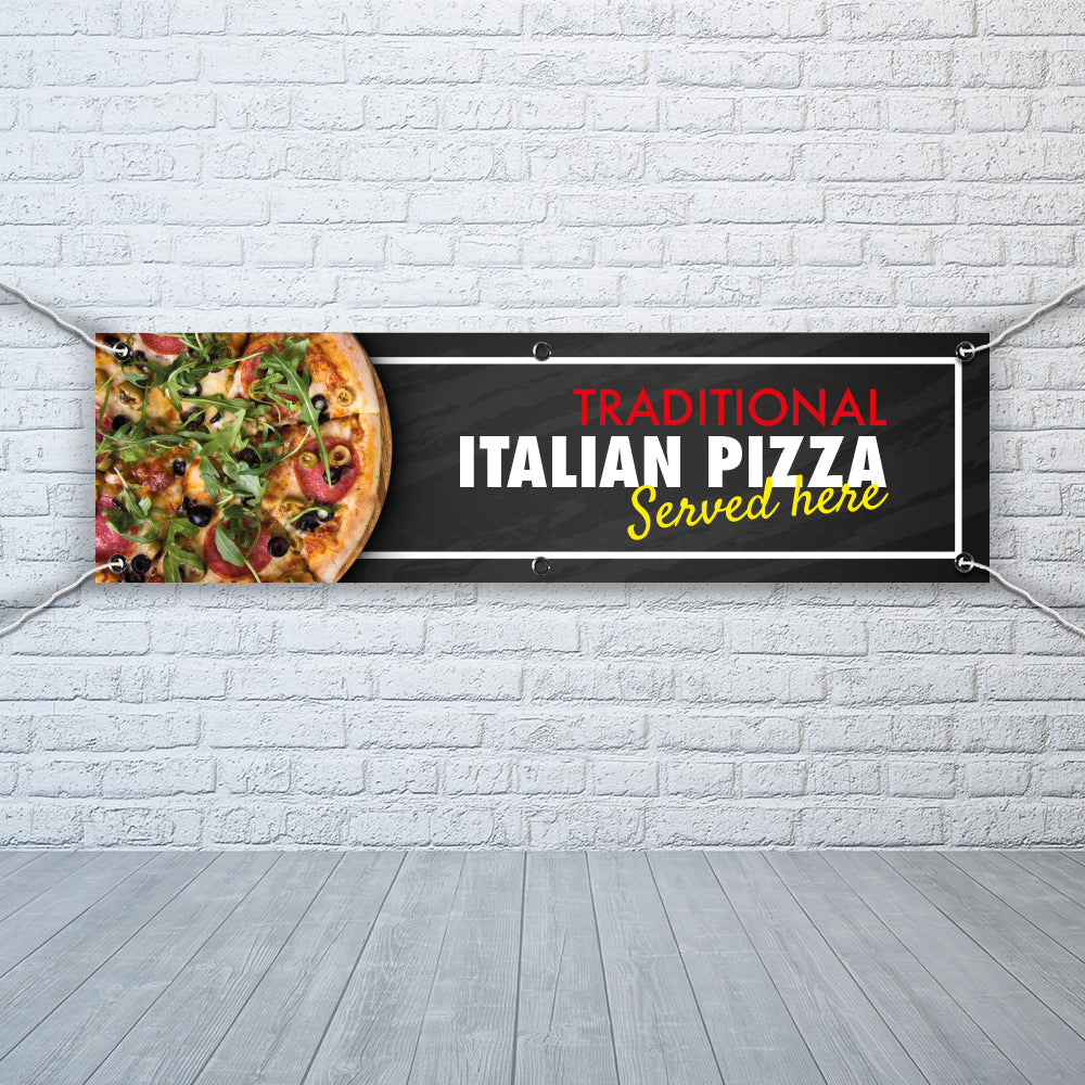 PVC Banner italian pizza 1ft x 4ft Print Outdoor Waterproof High Quality