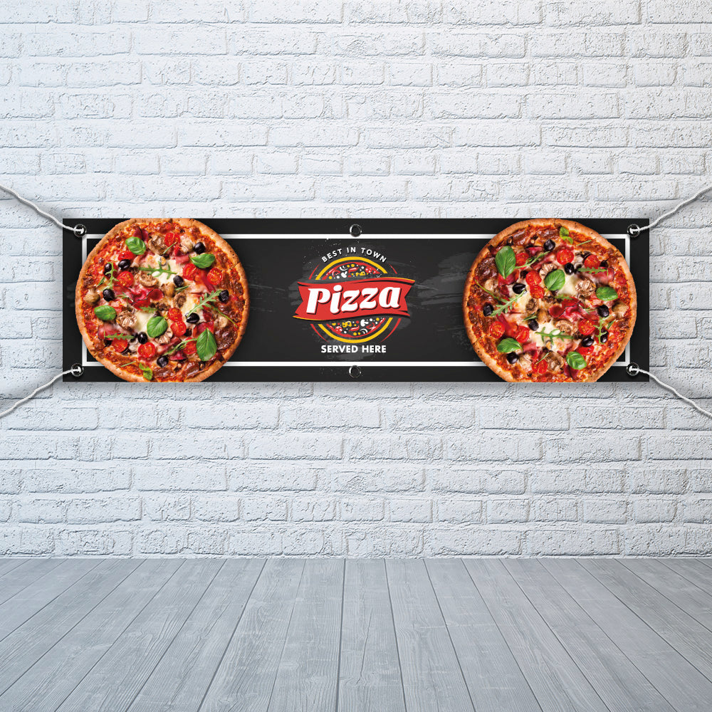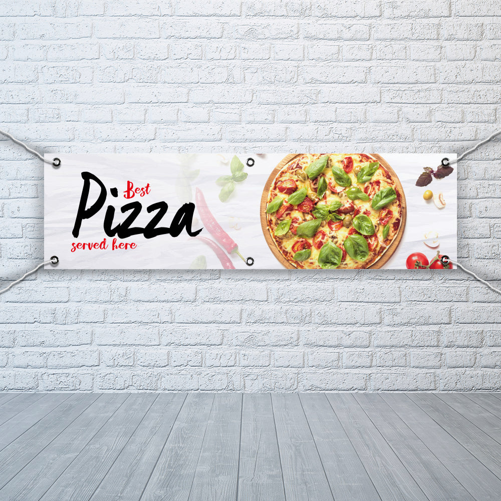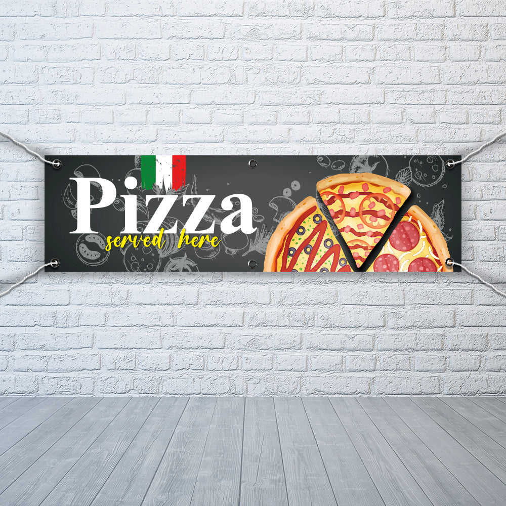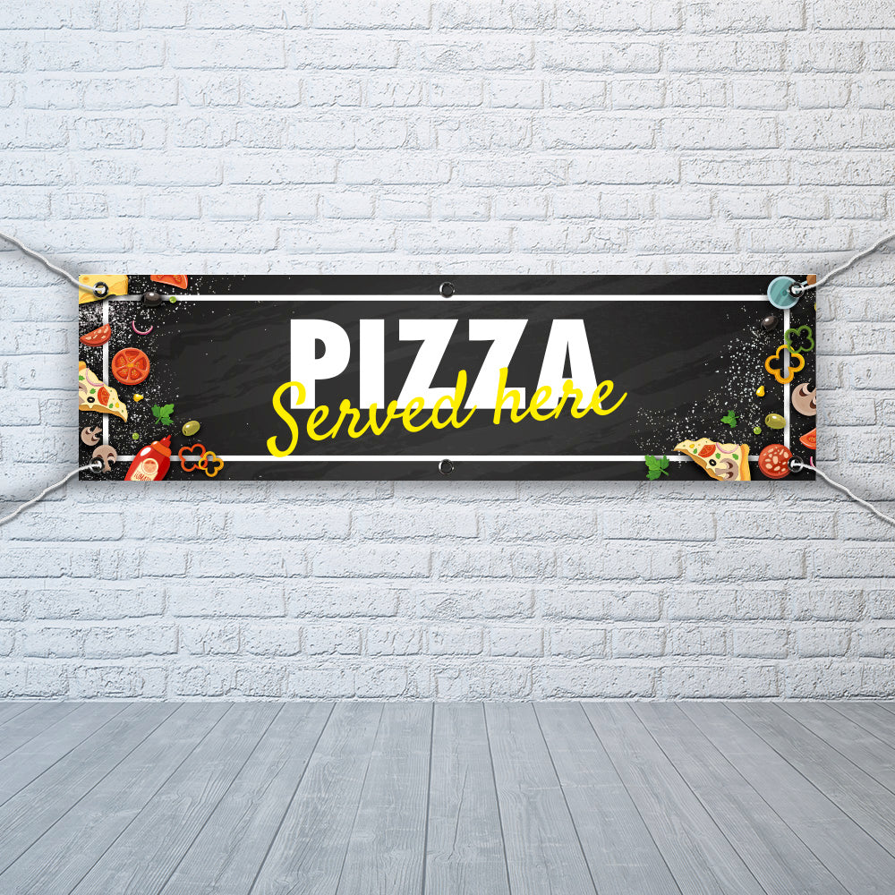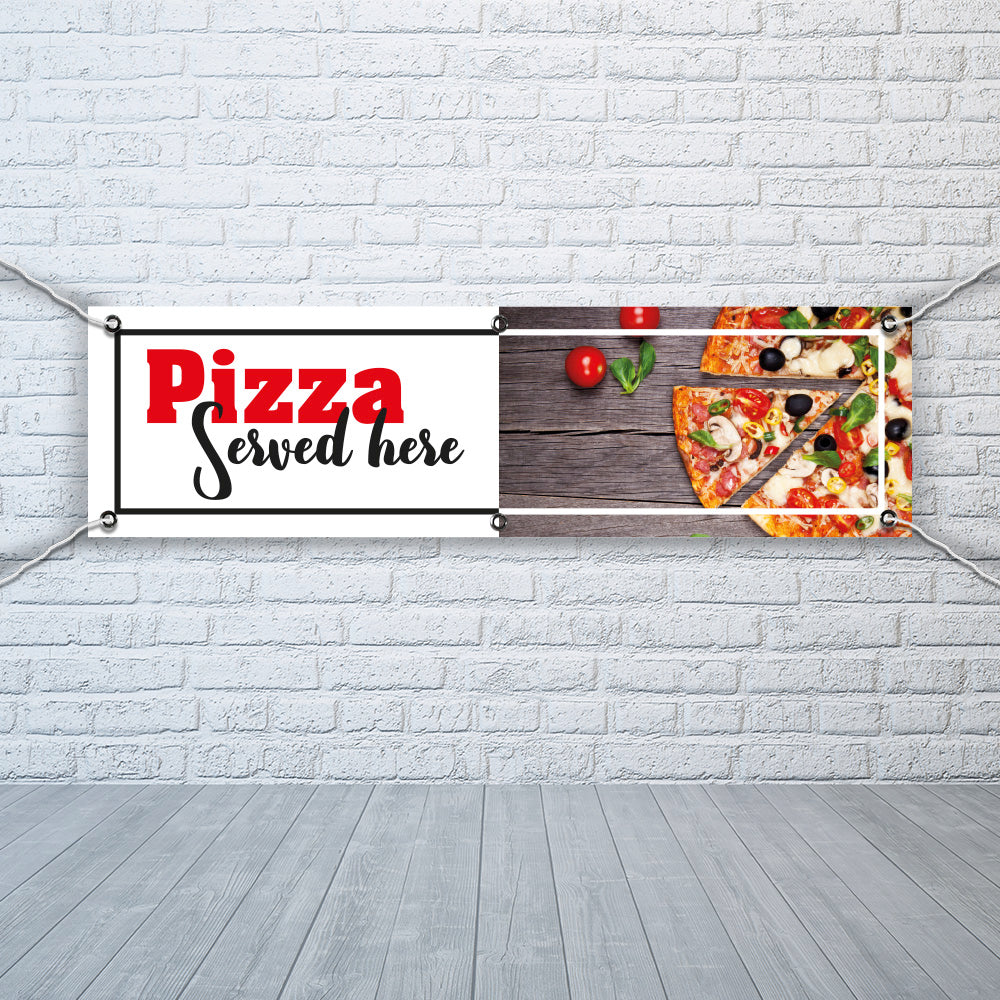 PVC Banner Pizza served here 1ft x 4ft Fast Food Print Outdoor Waterproof High Quality