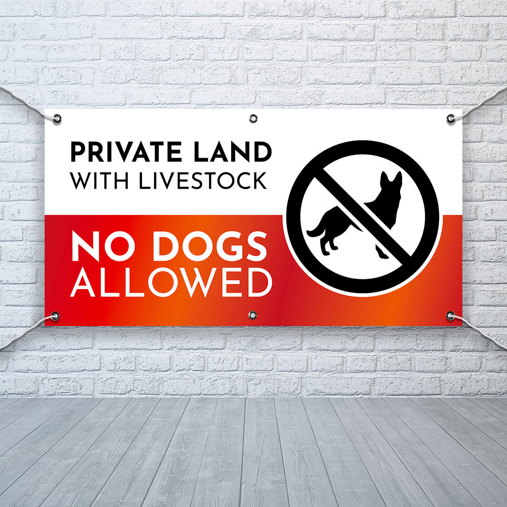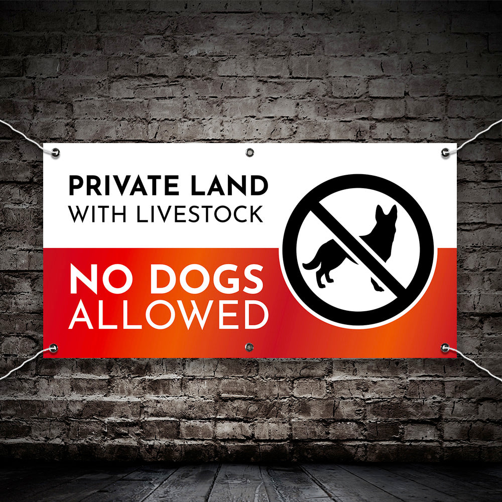 PVC Banner Private Land - No dogs allowed Outdoor Waterproof High Quality
