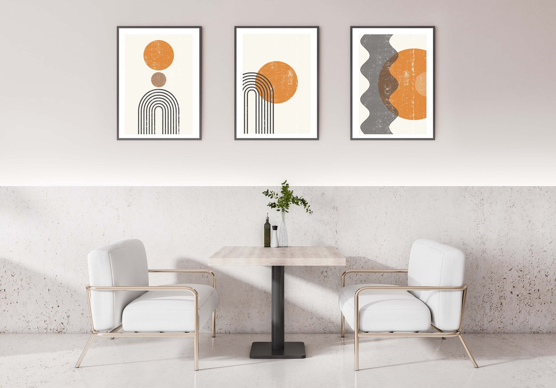 Looking to add a touch of abstract art to your home décor? This set of three abstract prints is perfect for you. Each print features an eye-catching graphic shape in soft colours, perfect for adding some personality to your walls. Whether you're looking to create a focal point in your living room or add a touch of personality to your bedroom, these prints will do the trick.