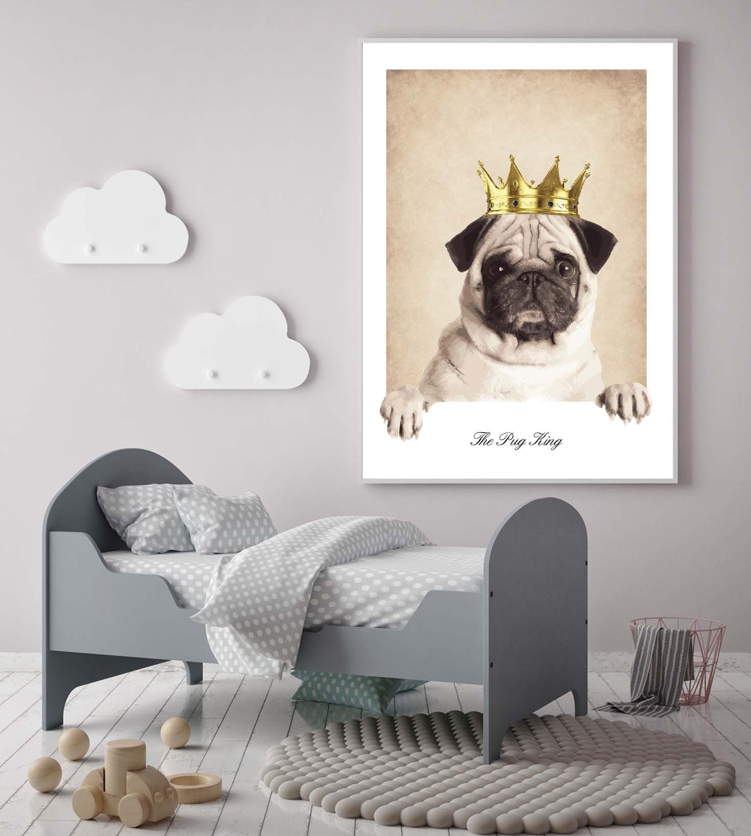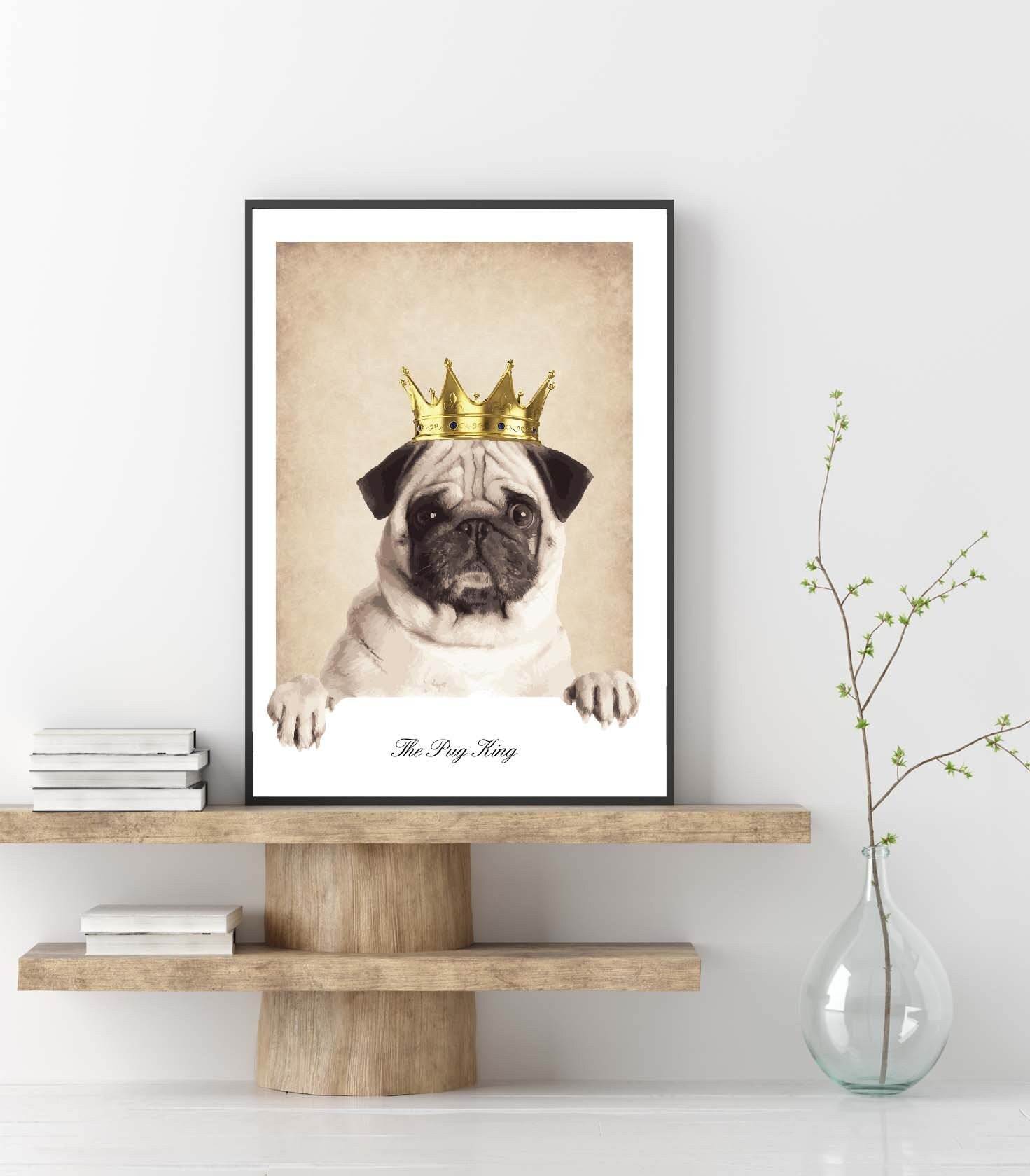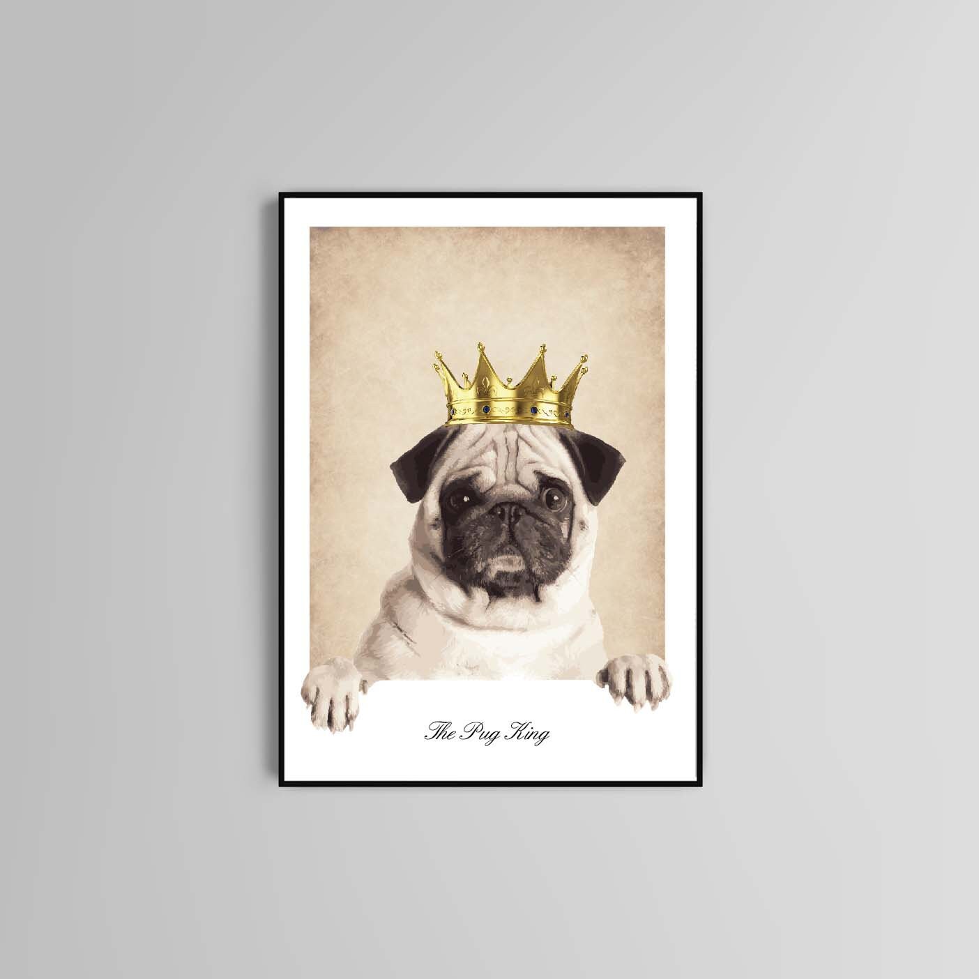 The Pug King poster print home wall art decor animal dog poster