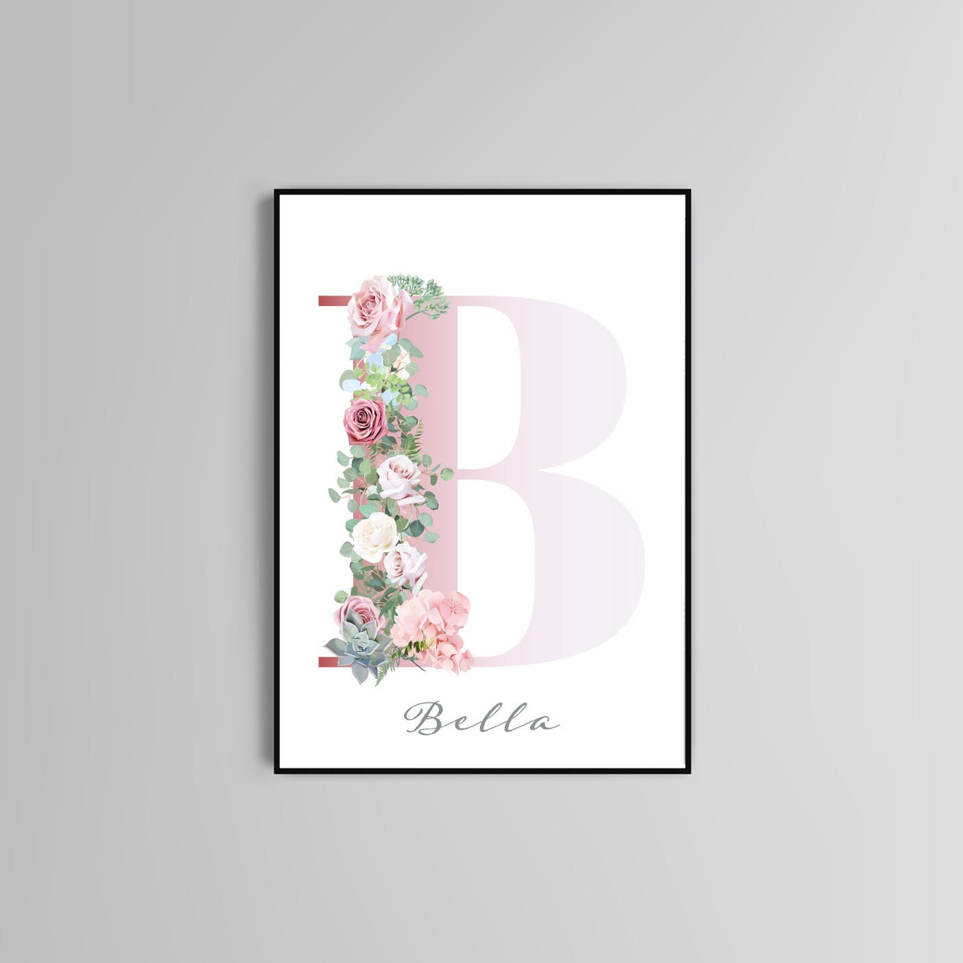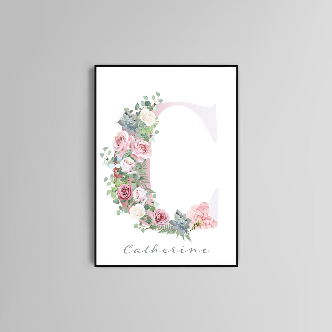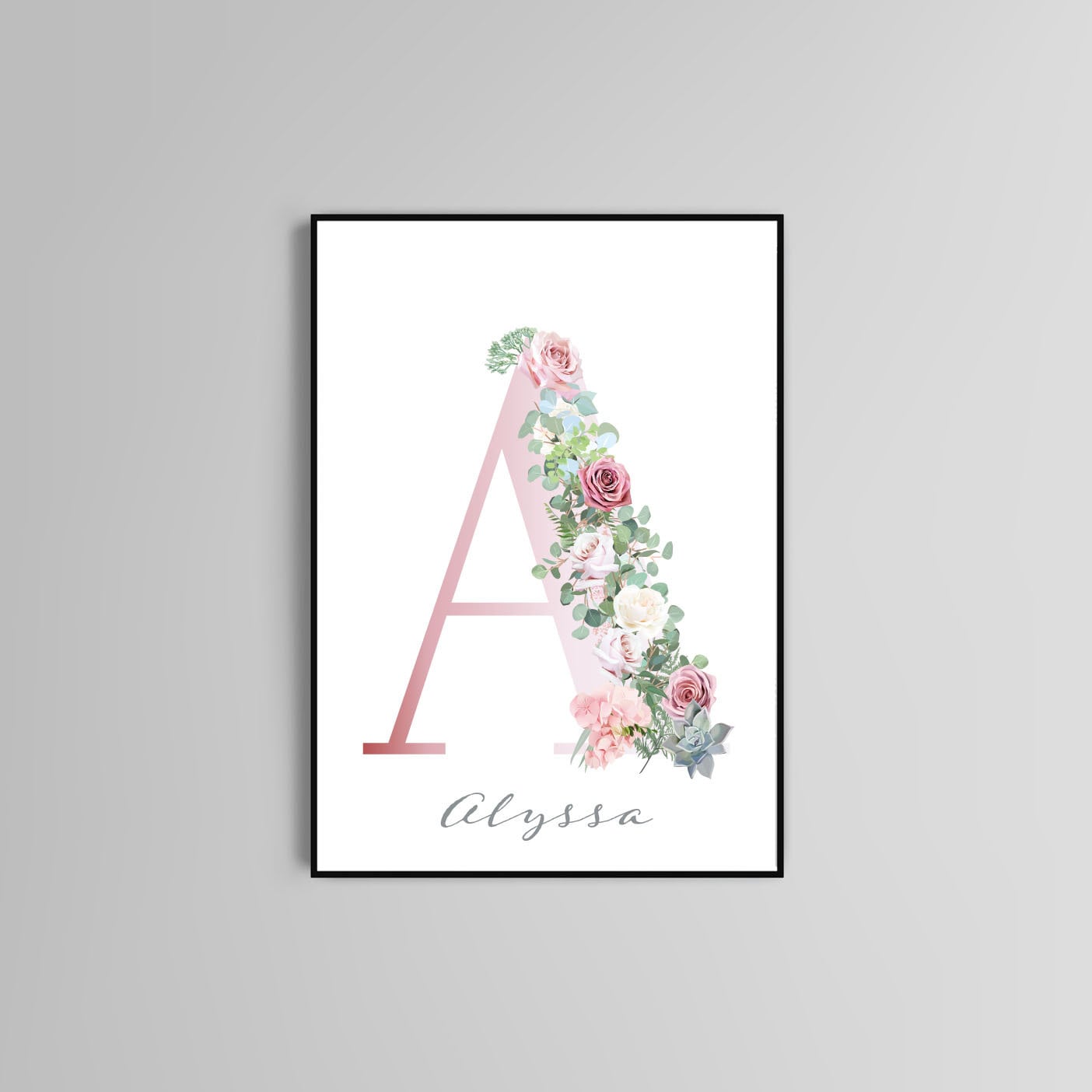 Alphabet letters poster print home wall art decor typography modern flower design
