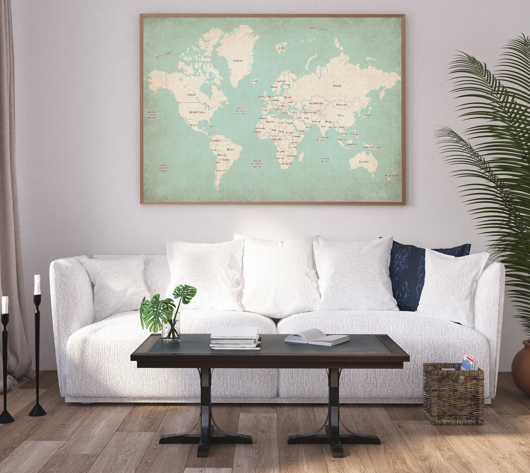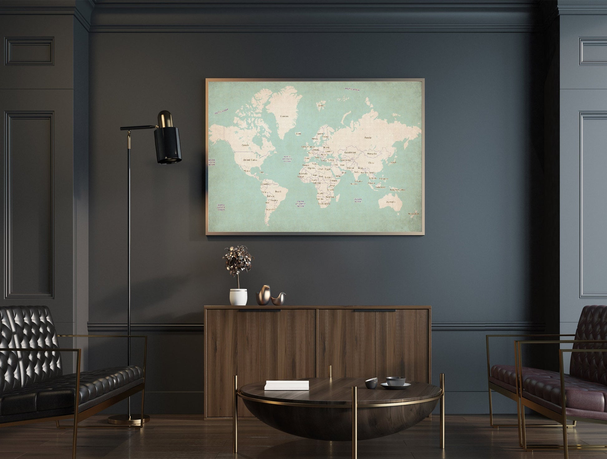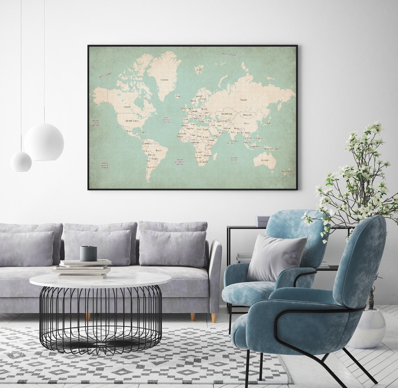 The paper used is 200gsm satin paper, ensuring that its sharpness and colour make it an attractive piece of art. It's a great way to decorate your bedroom or living space while sharing a love for geography and culture all around the World. With this map, you will admire exquisitely detailed geographical details and bold lines running through the famous landmarks of each country.