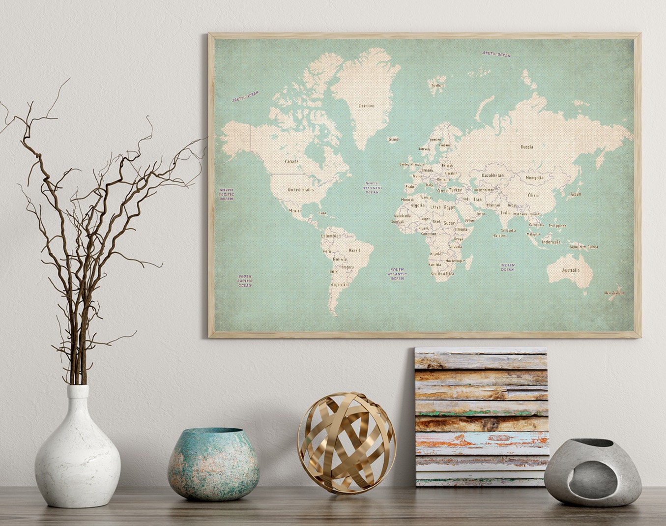 Our wall poster Old-style World Map is the perfect addition to any room. This poster has been printed using the latest technology latex printer which is environmentally friendly giving you peace of mind that you are doing your part in protecting our planet.